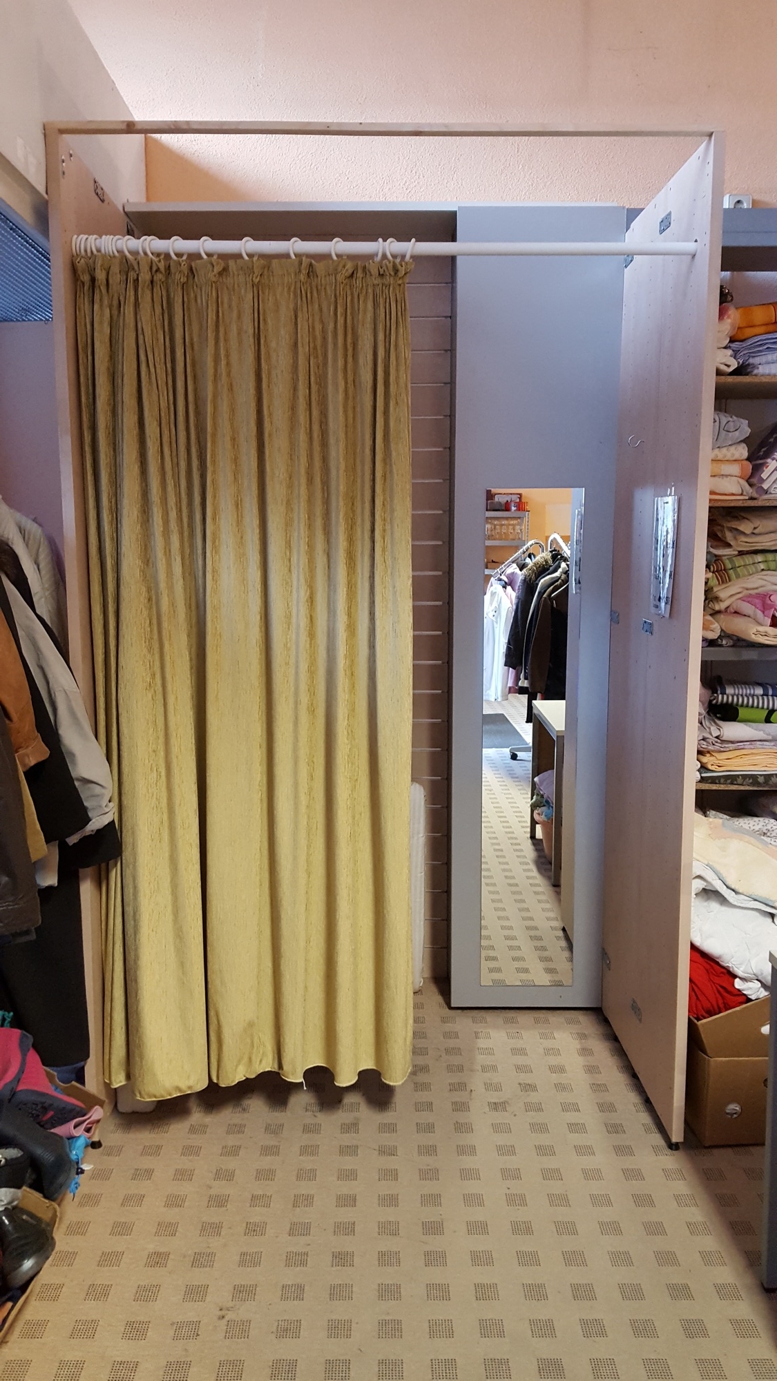 Auch Anproben sind kein Problem. In der Kleiderkammer steht den Kunden eine Umkleidekabine zur Verfügung