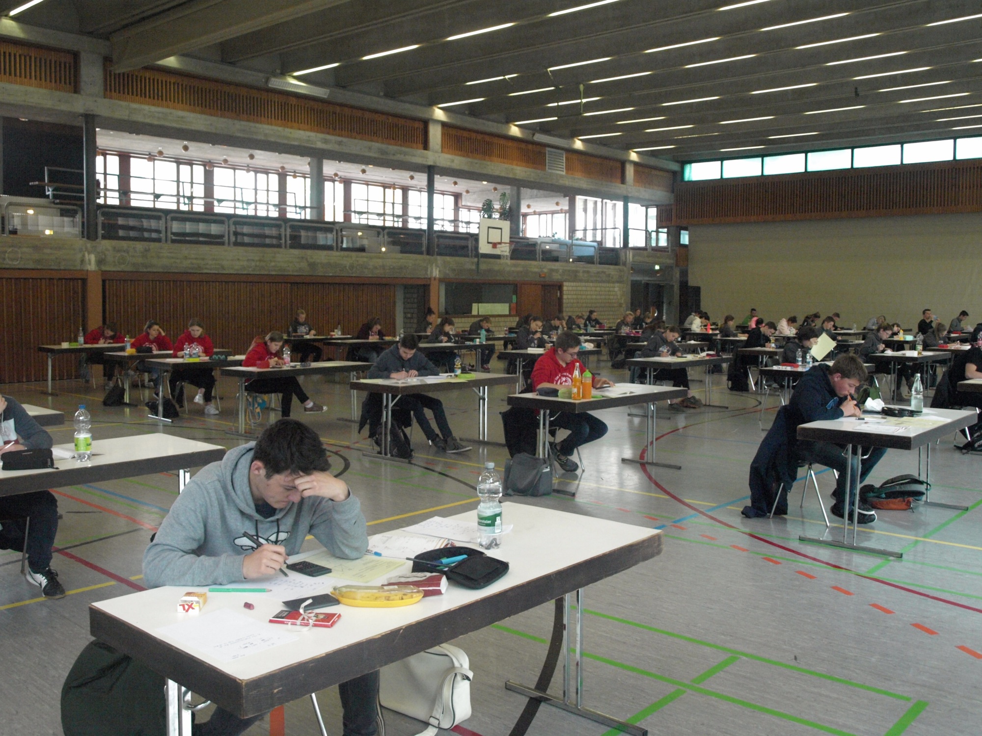 Das Fach Deutsch bildete traditionsgemäß den Auftakt der Prüfungsphase, die bis zum 10. Mai dauert. 63 Schülerinnen und Schüler der drei 10. Realschulklassen am Zeller Bildungszentrum brüteten am vergangenen Mittwoch in der Ritter von Buß-Halle über den vier ihnen vorgelegten Aufsatzthemen. Bei der Textbeschreibung hatten sie die Wahl zwischen dem Gedicht »Zur Fotografie eines Konfirmanden« von Erich Kästner und dem Kurzprosatext »Schwäne auf dem Wasser« von Benno Pludra. Thema drei verlangte eine Rede zum Thema »Ernährung heute – zwischen Mangel und Überfluss«, wozu geeignete Quellen aus einem selbsterstellten Kompendium im Hinblick auf ethische Aspekte und Nachhaltigkeit ausgewertet werden mussten. Wer die Prüfungslektüre »Wir tanzen nicht nach Führers Pfeife« von Elisabeth Röller für seinen Aufsatz wählte, musste einen inneren Monolog für eine der Hauptfiguren verfassen. »Die Themen waren gut«, urteilte Fachlehrer Hansjörg Wörner zufrieden, so dass die Prüflinge zeigen konnten, was sie gelernt hatten.