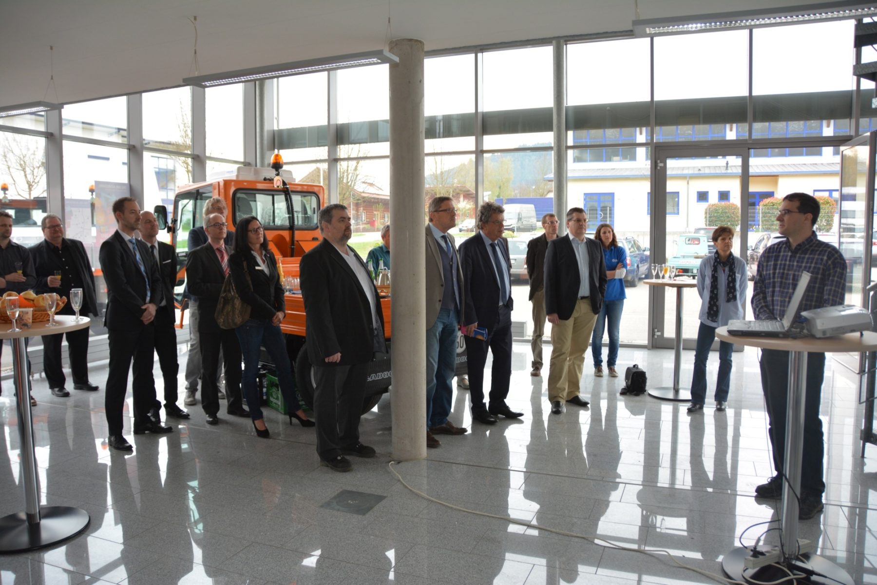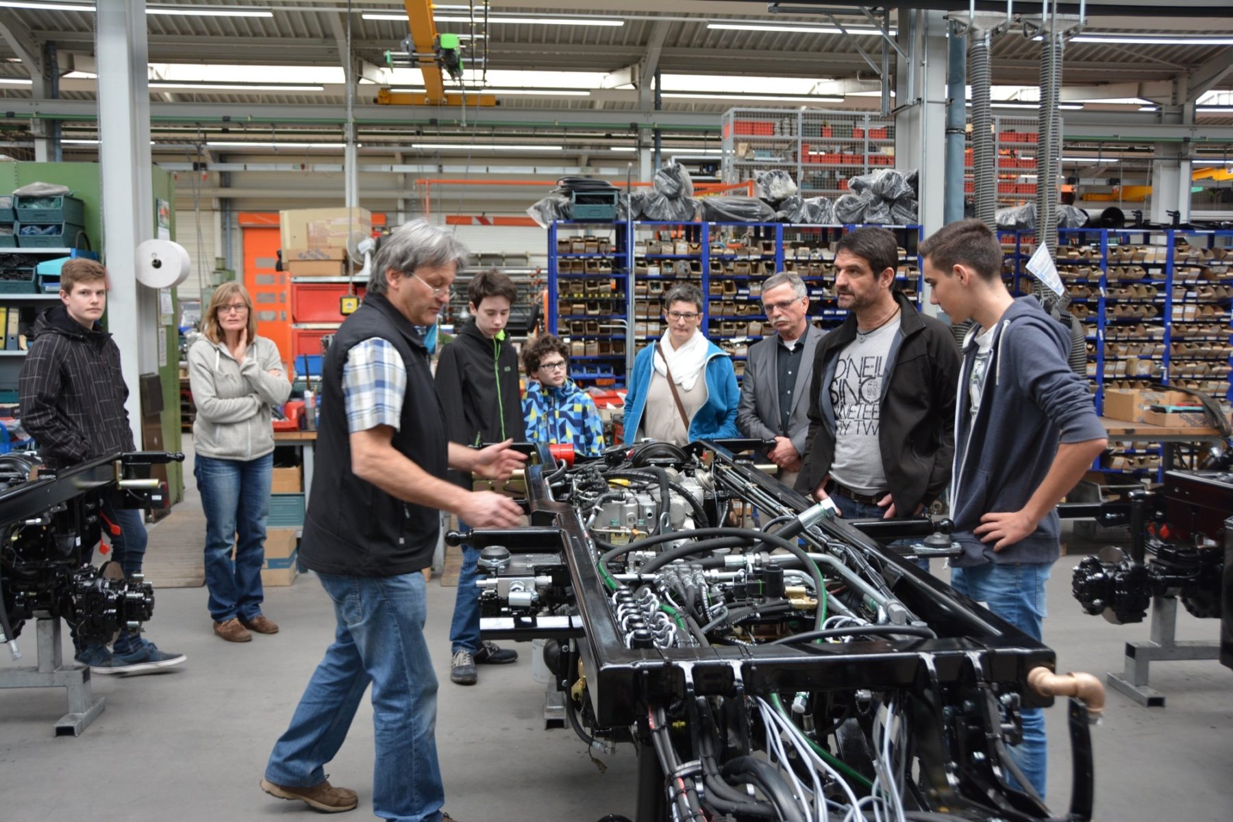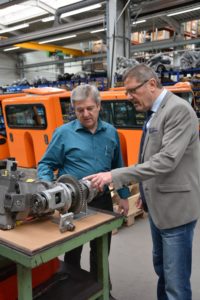 Björn Guggenbühler stellte den Besuchern, unter ihnen auch Bürgermeister Günter Pfundstein und die Vertreter mehrerer Schulen, das Traditionsunternehmen vor, das seine Wurzeln in Nordrach hat und seit dem Jahr 2007 in der modernen Werkshalle in Zell produziert. Früher stellte die Firma Ladog Fahrzeuge für die Landwirtschaft her, heute hat man sich ganz auf die Kommunaltechnik spezialisiert.