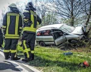 Am Samstag kurz nach 13.00 Uhr wurde die Feuerwehr der Stadt Zell zu einem PKW-Brand nach Unterentersbach alarmiert. Das Fahrzeug ist aus bislang unbekannter Ursache im Bereich des Gröbernhofs von der Straße abgekommen und frontal gegen einen Baum geprallt. Aufgrund des Aufpralls fing das Auto im Motorbereich Feuer. Vorbeifahrende Verkehrsteilnehmer handelten geistesgegenwärtig und löschten den Brand mit mehreren Feuerlöschern. Die Insassen haben sich bei dem Aufprall leichte Verletzungen zugezogen und wurden durch den Rettungsdienst versorgt. Die Feuerwehr führte noch kleinere Nachlöscharbeiten durch und trennte das Fahrzeug von der Batterie. Im Einsatz waren die Abteilungen Zell und Unterentersbach.
