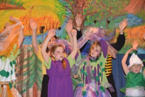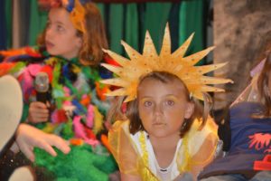 Das erste, sehr kindgerechte Musical, das von den Grundschulkindern im Alter von sechs bis neun Jahren gespielt wurde, erzählte die Geschichte von der blassen Schneeflocke, die sich auf die Suche nach ihrer Farbe machte.