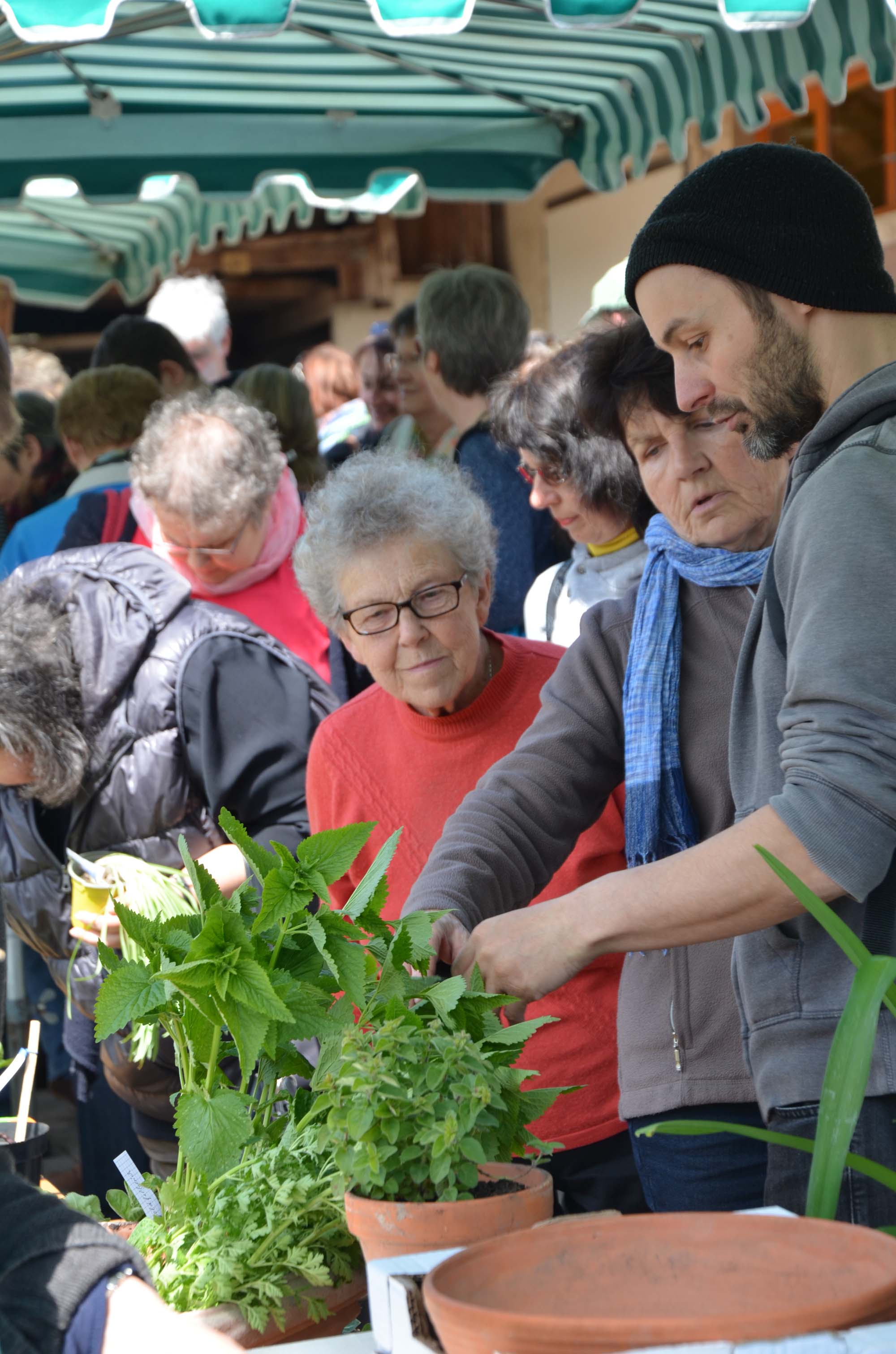 Wir haben versucht, die Leute zu begrüßen und einzuweisen, wohin sie ihre mitgebrachten Pflanzen stellen sollen, aber bei dem großartigen Andrang war letzteres schwierig. Jetzt hoffe ich, dass trotzdem alle den passenden Tisch gefunden haben. Wenn nicht, steht’s halt kreuz und quer. Hanni Schaeffer lacht.
