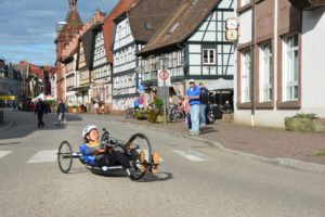 Foto: Hanspeter SchwendemannIm Anschluss an den Schutzengel-Lauf übernahmen am vergangenen Samstag die Handbiker die 1,4 Kilometer lange Strecke durch den Zeller Stadtkern. Die Renndistanz war wiederum eine Stunde und eine Runde. Dass in diesem Jahr nur 18 Fahrer zum Rennen in den Schwarzwald gekommen waren lag daran, dass zeitgleich zwei weitere Handbike-Rennen ausgetragen wurden. Ungeachtet dessen wurden in Zell Wertungspunkte für die NHC-Rennserie vergeben, bei der die Handbiker alljährlich ihre besten Fahrer in Deutschland ermitteln.