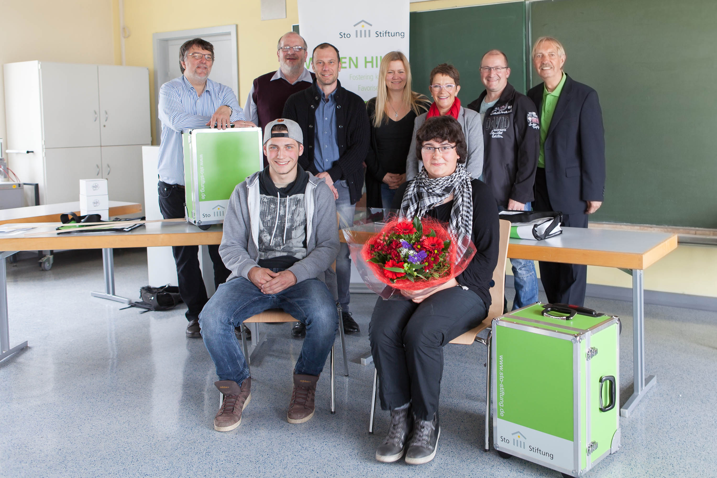 Im Bereich des Berufsbilds der Maler und Stuckateure unterstützt die renommierte Sto-Stiftung junge Menschen in ihrer handwerklichen und akademischen Ausbildung und honoriert diejenigen, die durch ihre überdurchschnittlichen Leistungen Vorbild für andere sind. Mit einem umfangreich ausgestatteten Profi-Werkzeugkoffer soll den hundert besten Maler-Lehrlingen Deutschlands der Übergang von der Ausbildung in das Berufsleben erleichtert werden. In einer Feierstunde während des letzten Blockunterrichts wurden an der Schule die Preise übergeben.