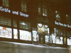 Zum anderen stellte er das einstige »Haus der Bücher« vor – die eingangs erwähnte Buchhandlung. Einst galt sie als Perle Königsbergs, als eine der großen Sehenswürdigkeiten, erschaffen und geführt von Gräfe und Unzer, dem 1722 gegründeten und somit ältesten Verlag Deutschlands. Alte Postkarten, die der Autor bei einem Sammler am Bodensee gefunden hatte, vermittelten dem Publikum einen Eindruck vom einmaligen Innenleben der einstigen, sechs Stockwerke umfassenden Buchhandlung.