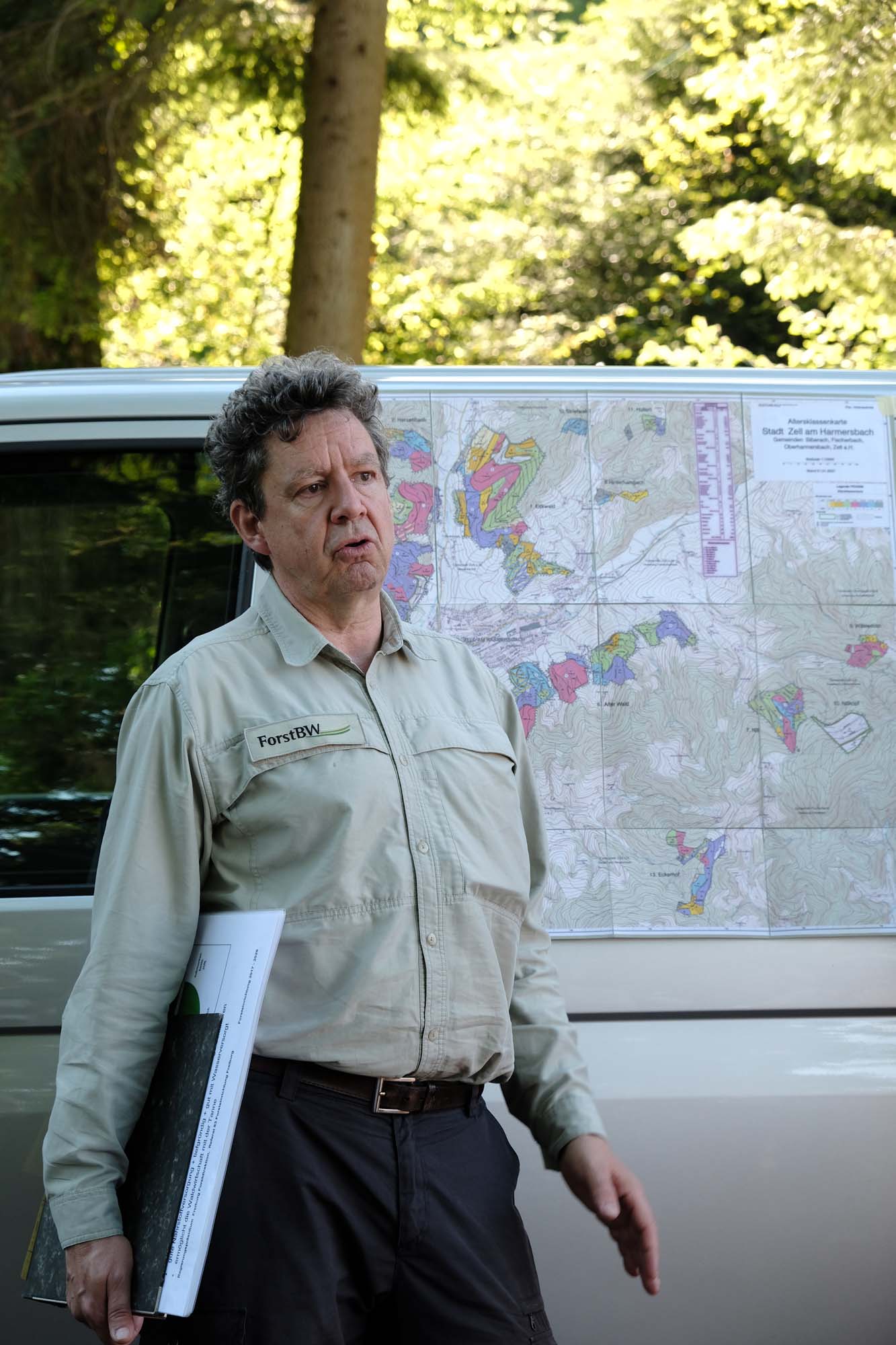 Basis für die Entscheidung war eine aktuelle Stichproben-Inventur, die der Landesbetrieb Forst BW im Auftrag der Stadt durchgeführt hatte. Es war bereits die dritte Wiederholungsinventur, so dass sich aus ihr gut die Entwicklung in den städtischen Wäldern ablesen lässt. Sie hatte ergeben, dass auf fast allen 155 erfassten Teilflächen ein standortgerechter Mischbestand vorzufinden ist. Fast 70 Prozent der Flächen werden von Baumarten der Naturwaldgesellschaft belegt. Das sei ein gutes Stabilitätszeichen für den Gesamtwald, erläuterte Willy Nain vom Landesbetrieb Forst BW dem Gemeinderat bei der Waldbegehung am Eckwald-Pavillon. 22 verschiedene Baumarten sind zu finden. Aufgrund der tiefgründigen Böden sei viel Tanne im Bestand, was sich günstig auf die Einkommenssituation auswirke. 41 Prozent der Fläche seien beste Standorte, die weit über dem Durchschnitt lägen. Betrachte man die Alterslagerung, gäbe es große Bestände in einem Alter von 61 bis 120 Jahren. Damit ist der Zeller Stadtwald ein Vorratswald. Unter den alten, großen Bäumen wächst der Wald via Naturverjüngung auf gut 50 Prozent der älteren Waldflächen bereits heran. Doch es gäbe auch relativ viel dickes Weißtannen-Holz, das an Wert verliert, wenn es noch lange weiterwachsen darf. »Die momentane Situation in Zell ist sehr positiv«, bestätigte auch Forstbezirksleiter Joachim Hass. Eine 10-Jahres-Periode wie die abgelaufene ohne große Naturkatastrophen habe es in den letzten 50 Jahren nicht gegeben.