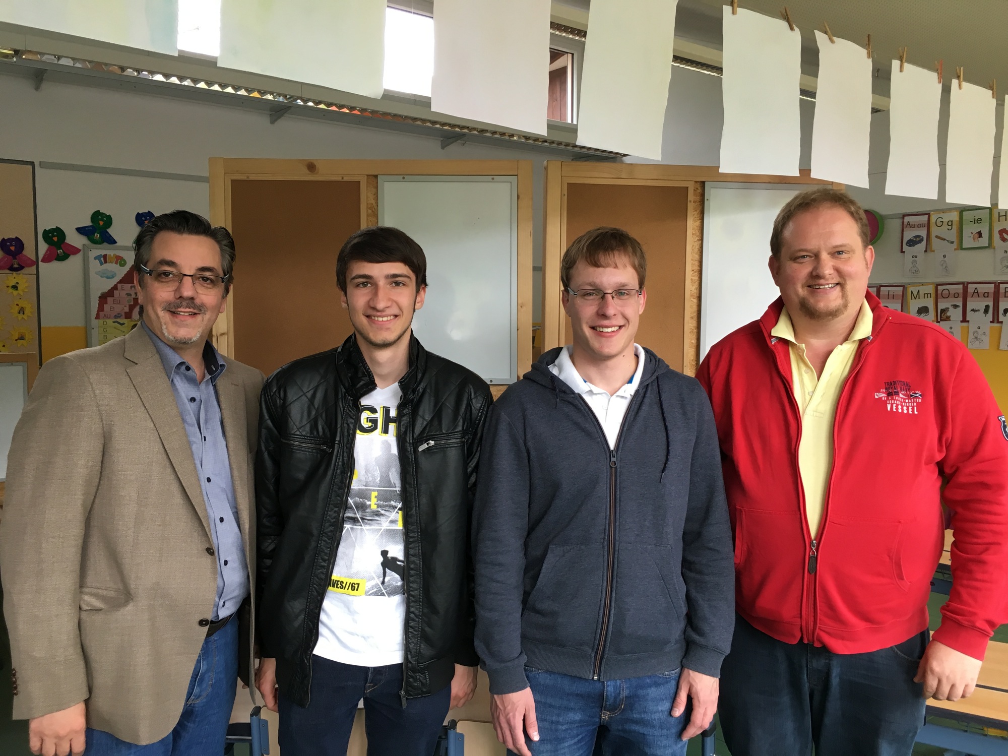 Freude über Gold teilen (von links): Ausbilder Aurelian Kindilide, Klarinettist Nico Armbruster, Trompeter Jan Breig und Ausbilder Stefan Polap. Foto: privat