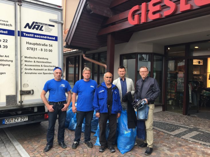 Alle Hosen wurden in den Modehäusern gesammelt, anschließend in Säcke verpackt und an die »Guck Rein Textil« in Hausach gespendet. Herr Bauer und sein Team kamen vergangene Woche in Haslach vorbei, um die Hosen abzuholen.