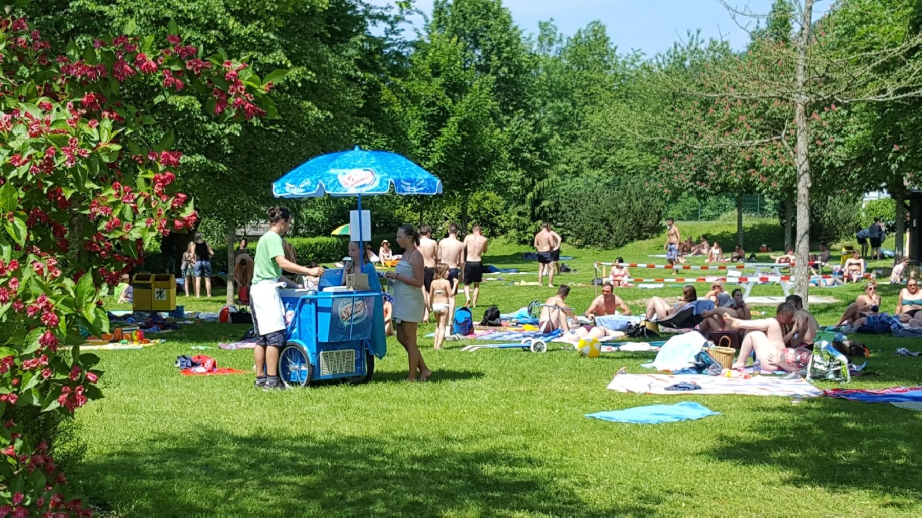 Foto: Familienbad Zell a. H.Bei nahezu tropischen Temperaturen standen die Besucher schon am Morgen vor der Tür, um sich abzukühlen. Darauf war der Kioskbetreiber Bora Cengiz mit seinem Team bestens vorbereitet. Die Schwimmbad-Gäste wurden sogar an ihren Liegeplätzen im ganzen Schwimmbad durch einen fahrenden Eiswagen bedient. Das Schwimmbad-Team freute sich über Gäste aus der Brandenkopf-Region bis hin zum Elsass.