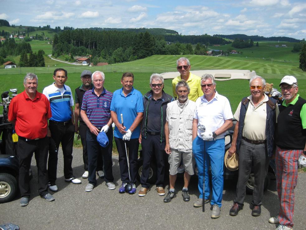An drei Plätzen nutzte man das Arrangement der Oberstaufen Plus Card. Am ersten Tag spielte man den Oberstaufener Platz Bufling im Golfzentrum Oberstaufen mit einem anspruchsvollen Hügelcourse, aber auch großartigen Ausblicken in die Allgäuer Bergwelt. Zum 18-Loch-Platz mit Deutschlands höchstem Abschlag auf 1011 m Meereshöhe in Waldegg-Wiggensbach ging es am zweiten Tag. Der Abschluss war dann auf der Scheidegger Sonnenterrasse im 9-Loch-Golfplatz Scheidegg. Es ging neben der Kameradschaftspflege aber auch sportlich zu. An allen drei Plätzen war ein Turnier organisiert und Peter Sindl hatte zum Schluss auch ein »Dreitages-Ergebnis« zusammengestellt. Brutto ging an die drei »Einstelligen«, wo Hans-Joachim Domfeld mit 78 Punkten die Nase vorne hatte, vor Hermann Walter und Gerhard Langer mit jeweils 62 Punkten. Auch im Netto war der Club-Sportwart nicht zu schlagen und siegte hier klar mit 94 Punkten vor Achim Herbert mit 90 Punkten. Grund zum Feiern und Freibiertrinken gab es aber noch mehr. Nach dem »Hole in One« von Gerhard Langer am ersten Tag war es Hermann Krämer, der am zweiten Tag den 65. Geburtstag feierte und zur Kasse gebeten wurde. Der Dank aller Teilnehmer galt Peter Sindl, der nicht nur perfekt organisierte, sondern mit pfiffigen Siegpreisen und Geschenken den ganzen Golfausflug enorm bereichert hatte.