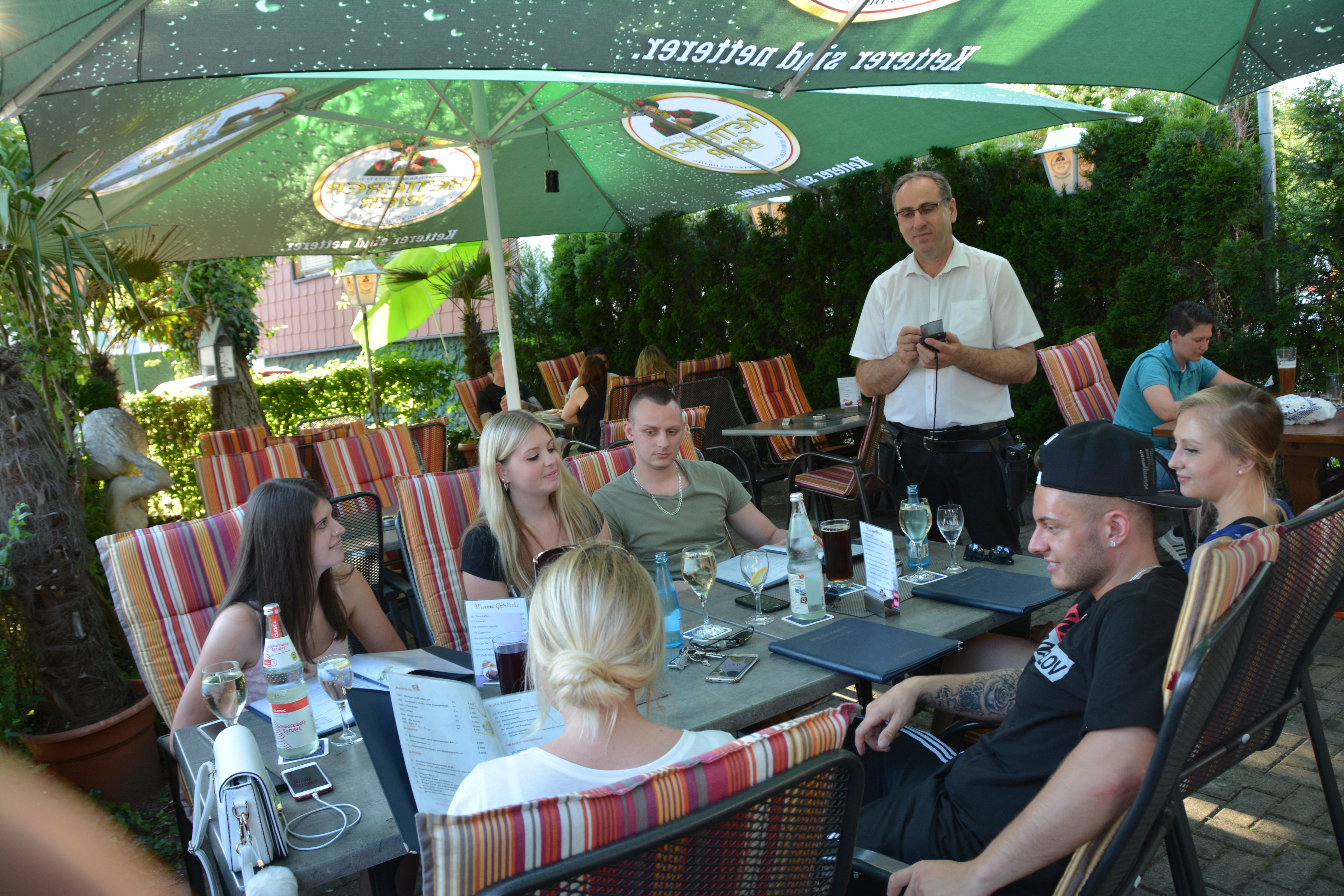 Die Speisekarte im »Poseidon« ist reichlich und lässt keine Wünsche offen. Vom feinen Vorspeisenteller über Fleisch-, Fisch- und vegetarische Gerichte spannt sich der Bogen bis hin zum süßen Galaktoboureko. »Wir bieten auch internationale Gerichte wie Pizza, Spagetti oder Schnitzel«, betont Gastwirt Vasilis Zampras.Besonders schön ist es im griechischen Restaurant an der Nordracher Straße zur Sommerzeit im schönen Biergarten, wo zwei neue, große Sonnenschirme für ein grünes Dach und Gemütlichkeit sorgen. Selbst bei ein paar Regentropfen kann man hier noch in aller Ruhe sitzen bleiben.