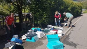 17 Mitarbeiterinnen und Mitarbeiter halfen einen ganzen Tag bei den Umbauarbeiten und beim Reinigen von Tierzubehör. Sowohl die Region Süd mit der Geschäftsstelle Hornberg, Hausach und Gutach als auch Kolleginnen und Kollegen von anderen Geschäftsstellen und Bereichen waren vertreten.