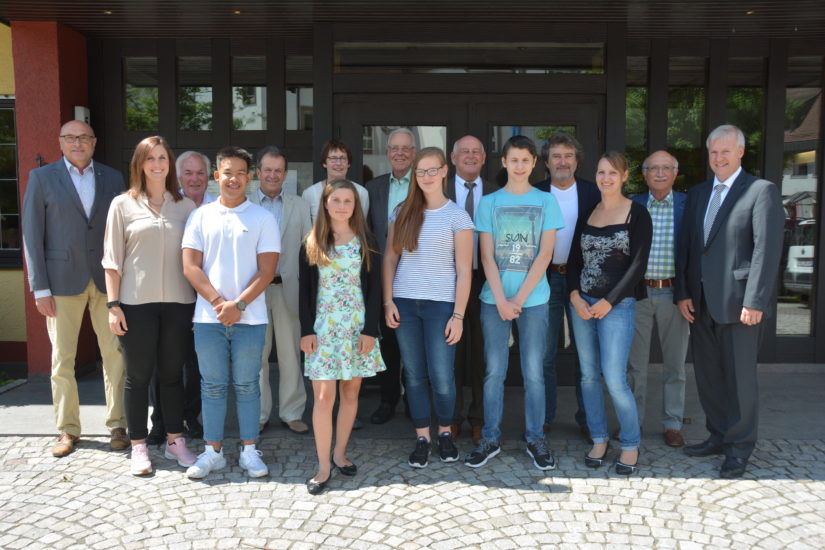 Mitgliedern der Jury blieb es dann vorbehalten, die vier Siegerarbeiten des diesjährigen Wettbewerbs vorzustellen. Aus der Hand von Bürgermeister-Stellvertreter Hannes Grafmüller durften die erfolgreichen Schüler die gewonnenen Preise entgegennehmen – es sind Armbanduhren, die sie sich persönlich auswählen durften. Rektor Martin Teufel ehrte die Schüler namens des Bildungszentrums Ritter von Buß. Zur Teilnahme am Wettbewerb waren die Klassen 9a und 9b des Bildungszentrums Ritter von Buß aufgerufen.