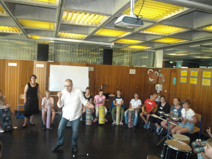 Uli Moritz ist ein Fachmann für Bodypercussion. Auf spielerische Art entwickelte er in den Kindern über Bewegung und Sprache ein Gefühl für Rhythmus, den sie anschließend an den verschiedensten Instrumenten zum Ausdruck brachten. »Bodypercussion ist Rhythmusspaß in der Gruppe«, sagt er und das war an diesem Vormittag deutlich zu sehen und zu hören. »Da habe auch ich noch etwas dazugelernt«, bekannte Musiklehrerin Annette Backeberg anschließend.