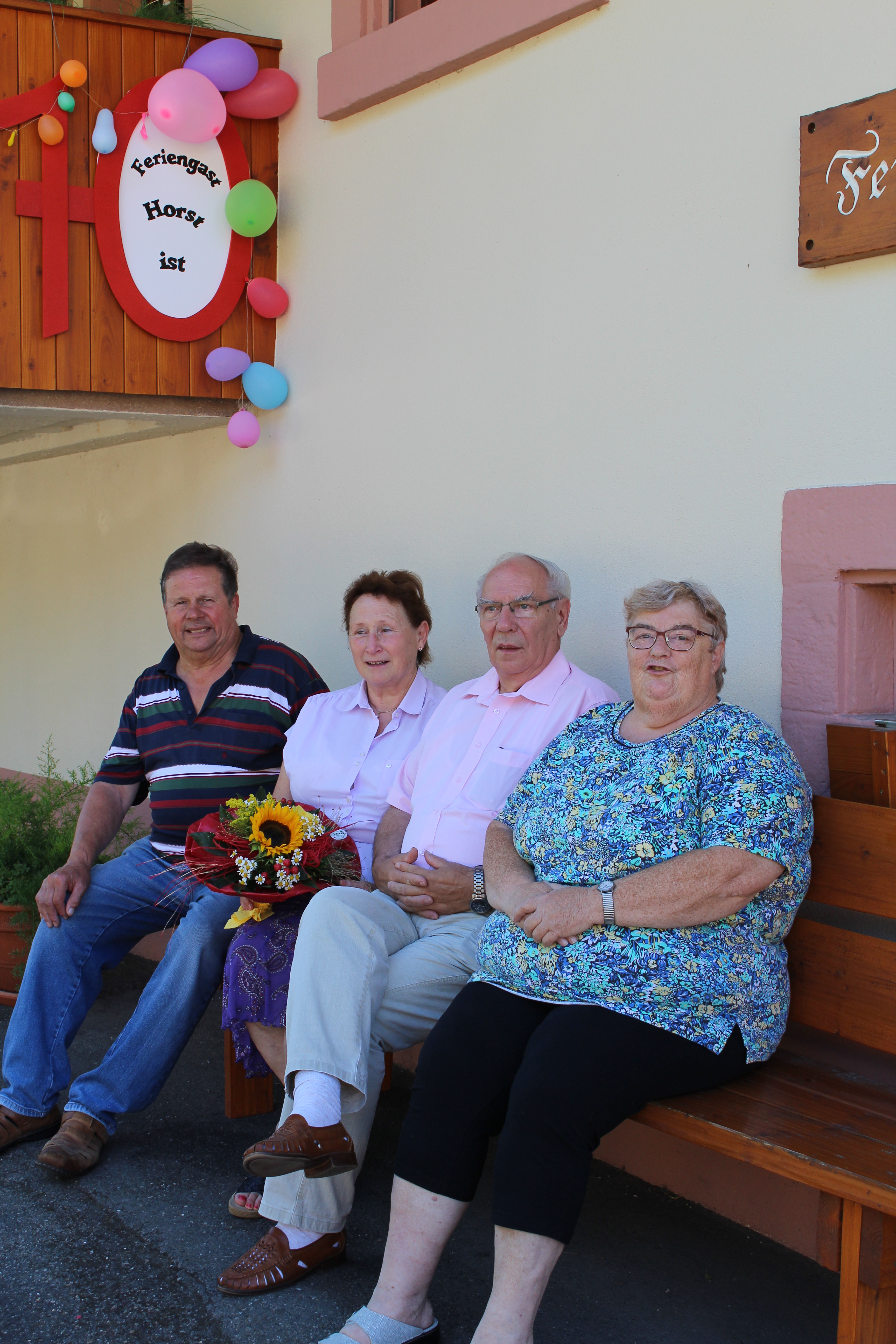 Sieglinde und Horst Matzke (Mitte) aus Leipzig kommen seit 15 Jahren zu Konrad und Elfriede Isenmann (außen) in Urlaub. Die ersten Jahre haben sie die gesamte Umgebung erkundet, heute möchte die Familie Matzke sich einfach nur erholen und den familiären Kontakt zu Familie Isenmann genießen. Herr Matzke feierte am Montag seinen 70. Geburtstag, zu dem auch einige Gratulanten aus der Nachbarschaft von Familie Isenmann gratulierten.