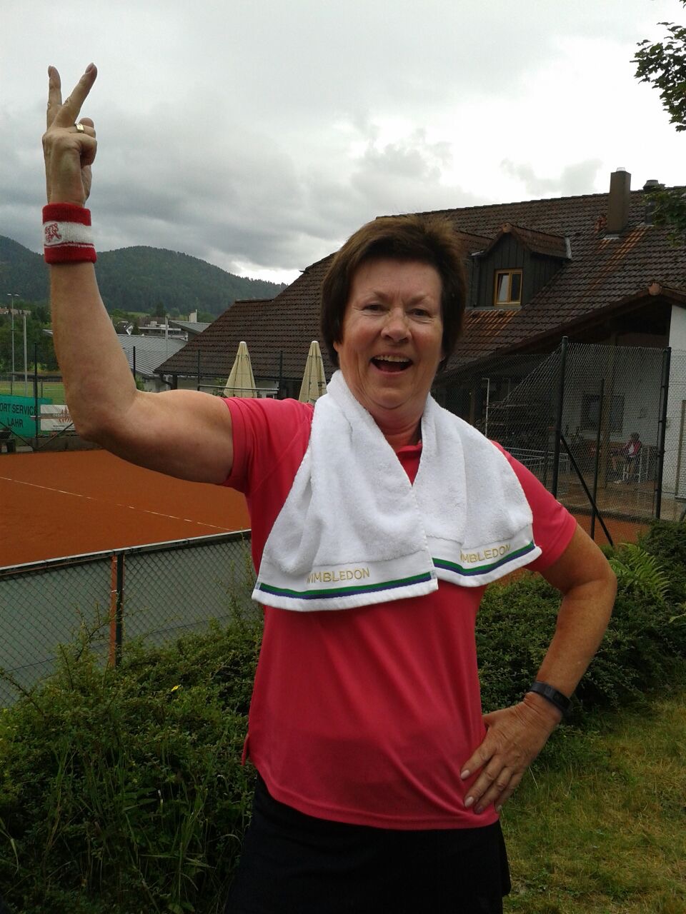Die strahlende Siegerin Sabine Richter mit ihrem Glücksbringer, dem Original Wimbledon-Handtuch! Foto: Irmgard Knes