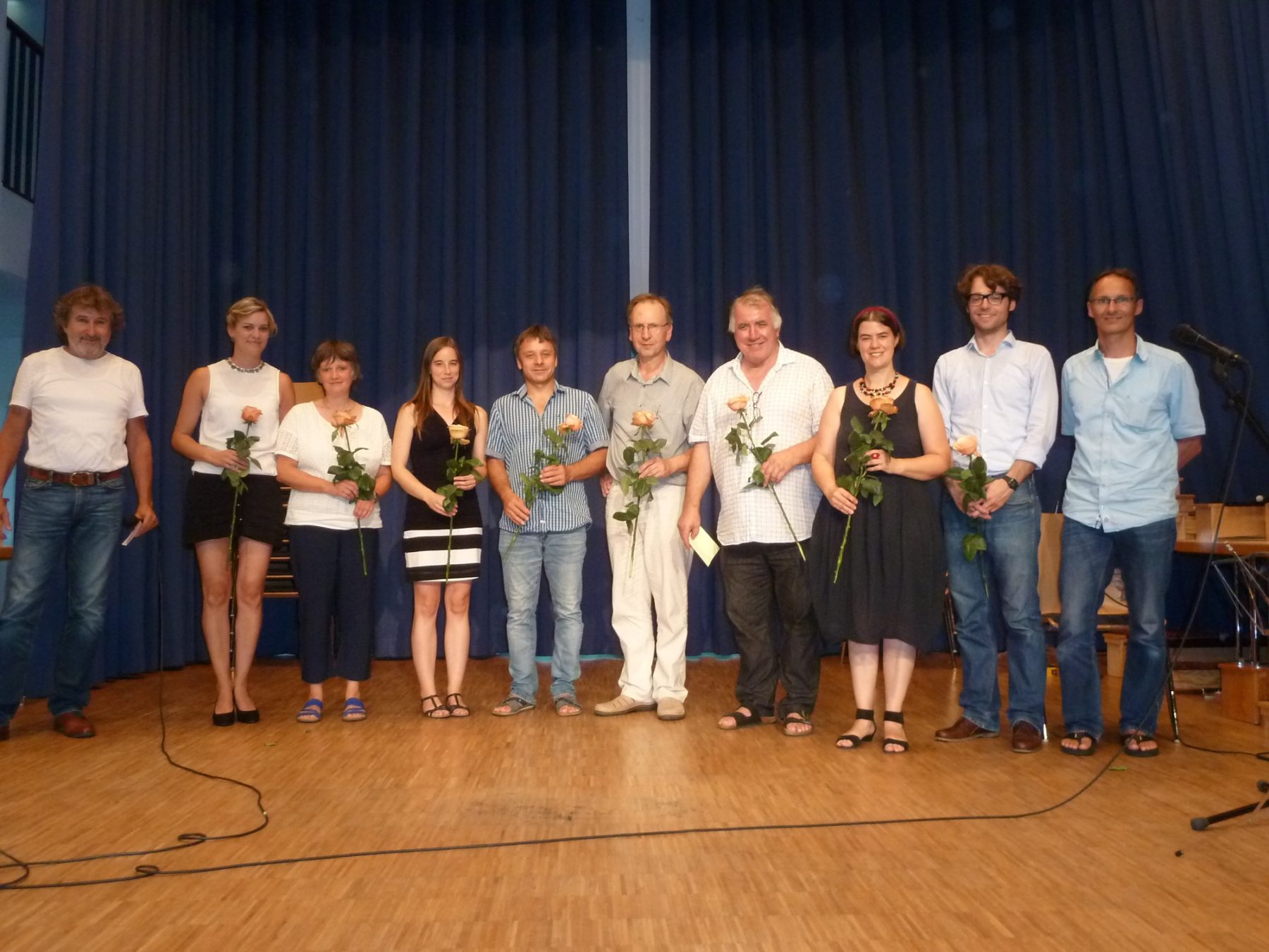 Kein Fest und keine Party ohne Musik von Discjockey David Guetta. Grund genug für die Musik-AG, den Dance-Hit »Titanium« zum Ausklang des »Musischen Abends« vorzutragen. Allerdings nicht als elektronisch aufgepeppten Partykracher, sondern in einer schlichten, nicht minder attraktiven Akustikversion mit fein abgestimmtem Gesang der Siebt- und Neuntklässler und Konrad Fees an der E-Gitarre. Trotz schweißtreibender Temperaturen, die an diesem Sommerabend im Saal herrschten, klatschte das Publikum anhaltenden Beifall.