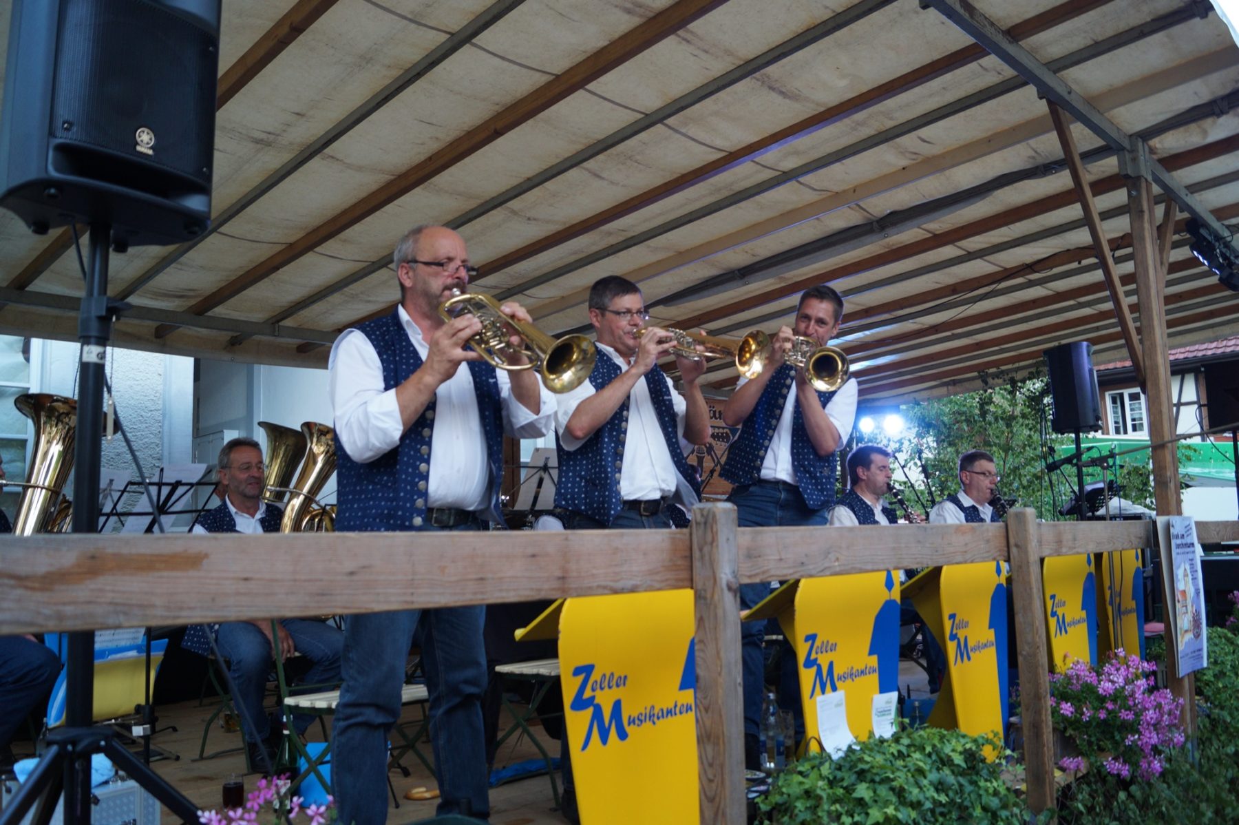 Im Anschluss heizten die jungen Oberharmersbacher »#Die Bänd« den Besuchern des voll besetzten Kanzleiplatzes ein. Evergreens und Ohrwürmer vergangener Zeiten, aber auch aktuelle Schlager zogen so manches Paar auf die Tanzbühne. Im Gespräch unter den heimeligen Platanen oder an der Bar bei leckeren Likören oder Cocktails und kühlem »Frischgezapftem« klang der Sommerabend – trotz kleinem Regenschauer – der Zeller Bürgerwehr fröhlich aus. Und eines ist klar: »Unser Biwak ist aus Zell einfach nicht wegzudenken!«