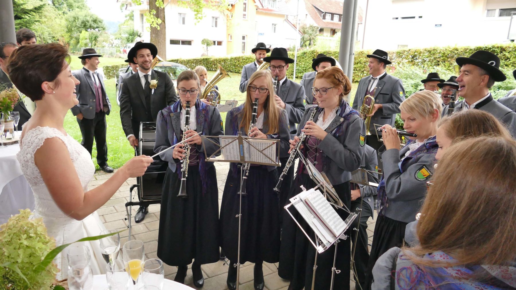 Von Herzen gern übernahmen die Entersbacher Musiker für die Freunde die musikalische Umrahmung der Musikerhochzeit und bereiteten mit ihrem Vorsitzenden Markus Vollmer zum Festtag das Wunschprogramm vor.