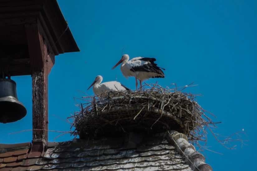 Normalerweise verlassen die Störche Ende Juli ihre Nester, um wieder Richtung Süden zu ziehen. Jetzt ist es Anfang September und die Störche auf dem Rathausgiebel und dem Storchenturm können immer noch auf ihren Nestern, vor allem abends, beobachtet werden. »Die Jungtiere sind schon weg, aber die beiden alten Paare sind noch da«, bestätigt der Zeller Storchenvater Karl-Heinz Schmieder. Das längere Verweilen der Storchenpaare ist auch manchen Bürgern aufgefallen, wie Bürgermeister Pfundstein von Anfragen auf dem Rathaus weiß. Warum das so ist? »Die Störche spüren, dass wir einen schönen Herbst bekommen«, vermutet Karl-Heinz Schmieder. Unser Leser Eberhard Kramer hat die Störche ebenfalls beobachtet und schreibt uns: »Noch sind sie da. Ich bin bald wieder in Berlin.« Wohin es die Störche wohl zieht?