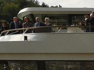 Während die Königin im Bordrestaurant mit ihrer Familie speiste, als Koch wurde eigens hierfür der bekannte Johann Lafer engagiert, genossen die »Zeller Musikanten« und alle anderen ca. 200 Passagiere auf dem Sonnendeck die Fahrt. Sie führte über Kloster Neuburg, Neckargemünd nach Neckarsteinach. Wer die »Zeller Musikanten« kennt der weiß, dass an Bord auch flotte Blasmusik nicht fehlen durfte, zur Freude aller Mitreisenden.