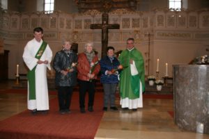 Beim Gottesdienst hatten die in der Gemeinschaft verbliebenen Frauen in der ers­ten Bankreihe Platz genommen. Ihre Vorsitzende, Agnes Beeh, begrüßte die Gottesdienstbesucher und teilte ihnen mit, dass die Gemeinschaft ihre Tätigkeit zum Jahresende beende. Im Mittelpunkte solle jedoch nicht die Betrübnis, sondern der Dank für all die Jahre des Miteinanders stehen. Ein »herzliches Vergelt’s Gott«, sagte sie Bruder Pirmin, der als Präses die Gemeinschaft über die Jahre geistlich begleitet hat.