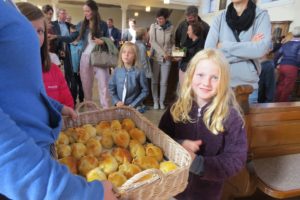 Am Ende der Feier gab es noch eine Überraschung für die Kinder: Das Familiengottesdienstteam hatte kleine Mäuse aus Hefeteig gebacken und verteilte sie an die Kinder.
