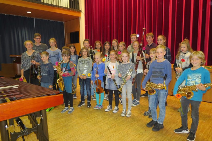 Das Konzert eröffneten Maren Bachlmayr, Anna Friedmann, Nelia Metzler, Samira Müller (alle Flöte) und Julia-Cecil Rumpel (Fagott) mit einem Concerto von Johann Molter. Sie zeigten ein harmonisches Zusammenspiel und haben bestimmt viel geübt. Ihren ersten Auftritt hatten Pia Diener, Jan Isenmann (beide Klarinette) sowie Hannes Schwendemann und Luisa Maier (beide Saxophon). Sie spielten ein lustiges Kinderlied und haben ihre Sache wirklich gut gemacht.