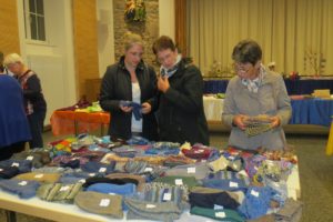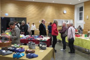 Stricken, Häkeln, Nähen und Basteln – die neun Frauen der Handarbeitsrunde wissen, was den Kunden gefällt und was zugleich auch noch nützlich ist. Alle Artikel gibt es zu gewohnt kundenfreundlichen Preisen. Produkte aus fairem Handel ergänzen das Angebot des Basars. Auch die selbst gebackenen Kuchen finden ihre Abnehmer, gut backen können die Frauen nämlich auch.