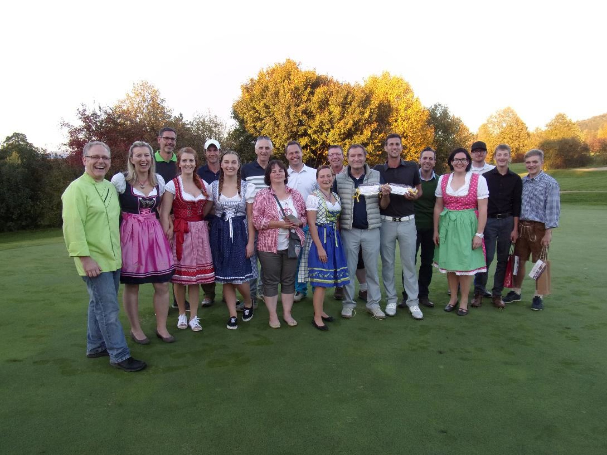 Es war ein goldener Oktobertag mit Bilderbuchwetter und auch guten Platzverhältnissen. Nicht nur der Sport machte Freude, auch zum Abschluss im Clublokal »Tenne« krachte es noch mal richtig. Zum bayrischen Büffet mit Weißwurst, Haxen und Krustenbraten und zünftiger Tanzmusik tauschten die Spieler den Sportdress mit Dirndl und Lederhosen.