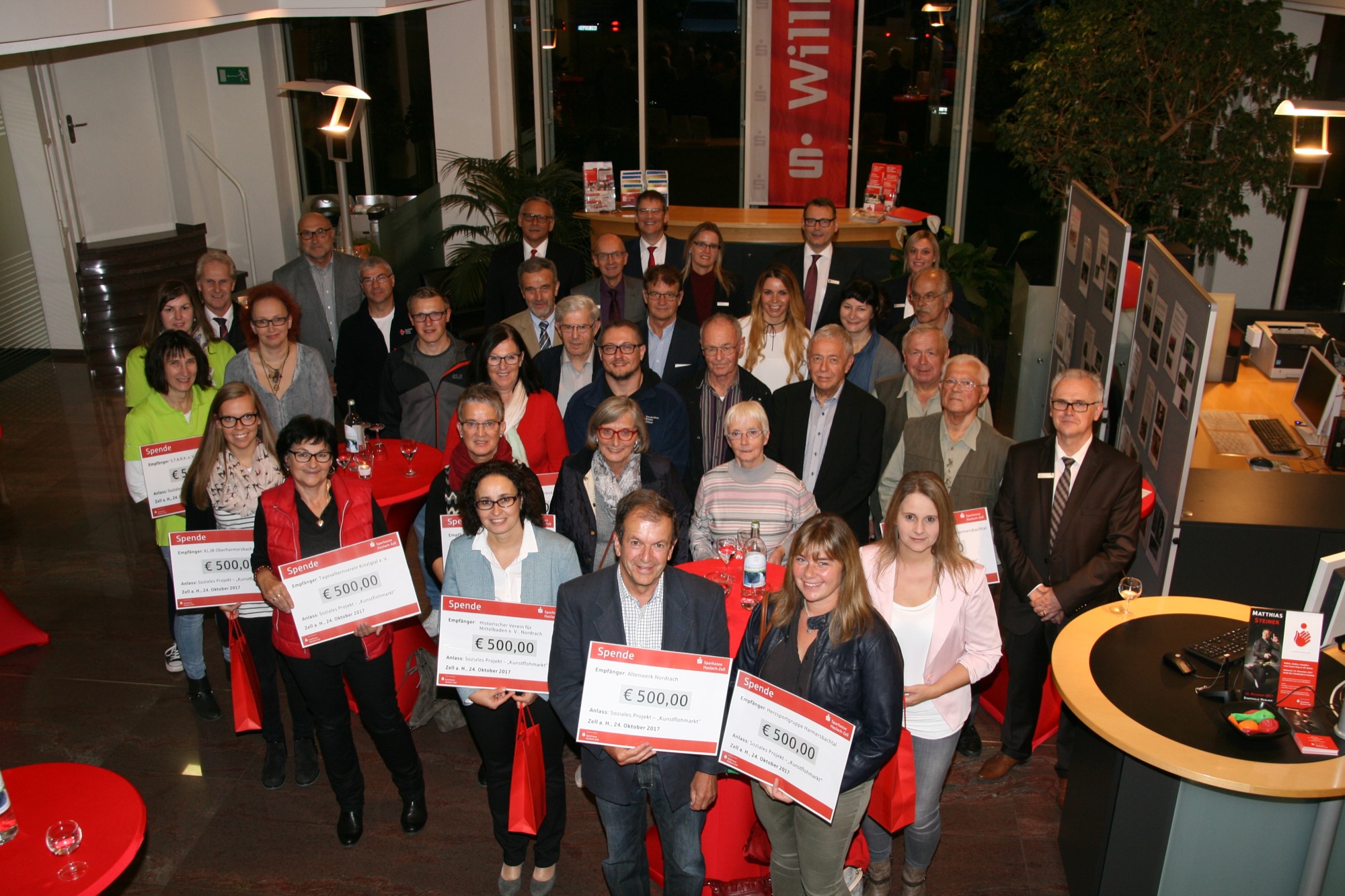 Im Frühjahr dieses Jahres fand im Zeller Kundenzentrum der Sparkasse Haslach-Zell ein Verkauf von Kunstwerken aus dem Lager des Bankinstituts statt. Der Erlös von 6.705 Euro wurde von der Bank auf 7.000 Euro aufgerundet. Jetzt wurden 14 Vereine der Raumschaft Zell mit jeweils 500 Euro bedacht.