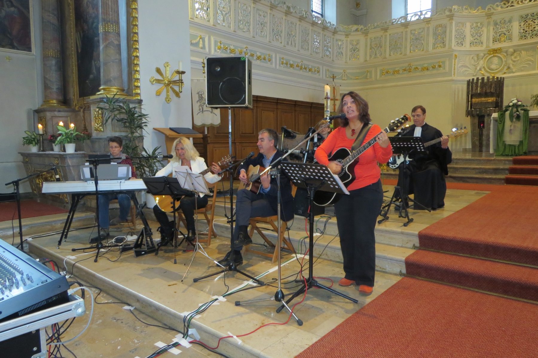 Die Musikband des Lobpreisteams der evangelischen Kirchengemeinde überraschte mit moderner Kirchenmusik, mit der sie die Feier musikalisch gestalteten. Die Sänger/innen und Musiker zeigten unter Leitung von Bianca Monninger, wie schön ihre Musik in der Pfarrkirche klingen kann.
