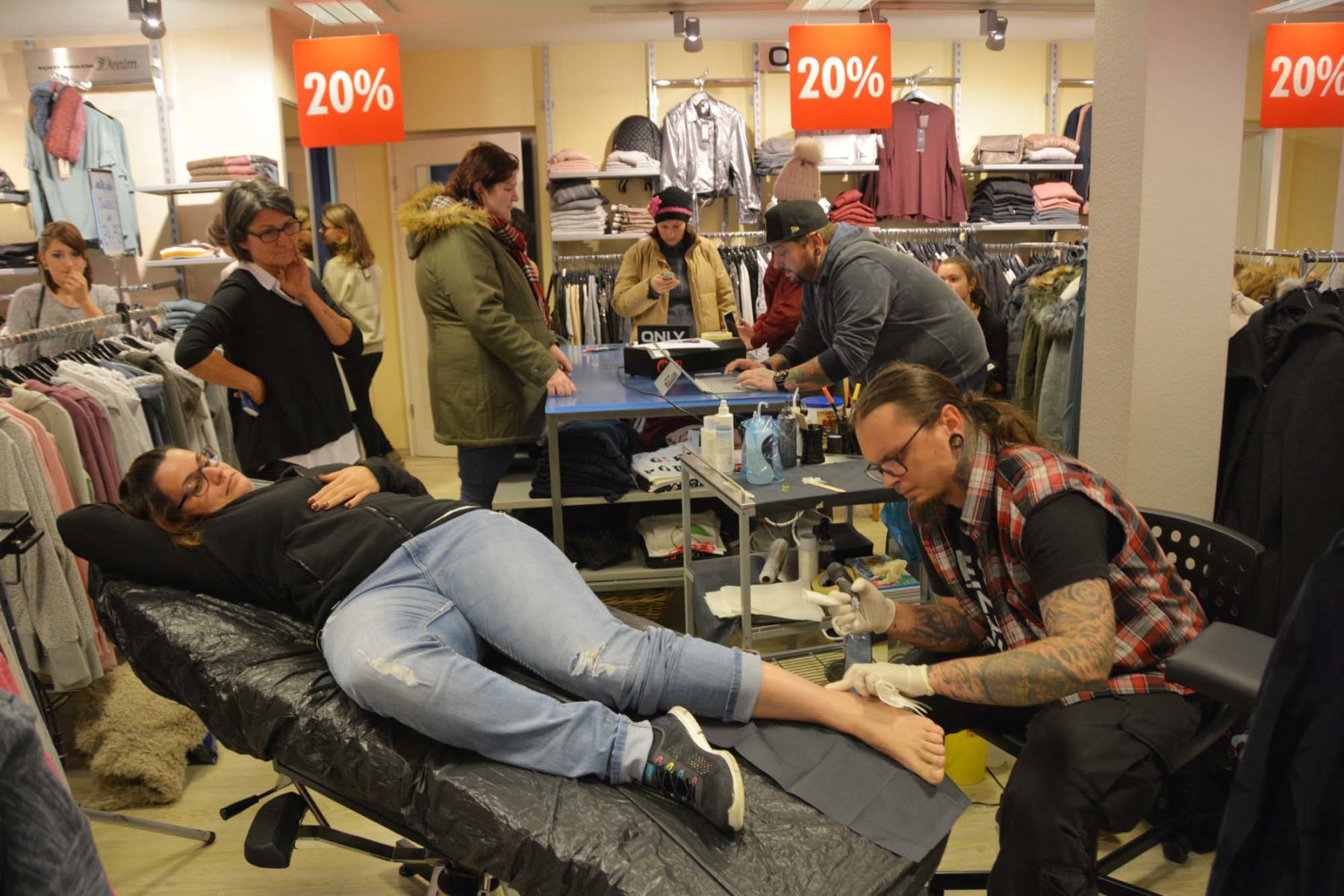 Am Samstag wurde das Modegeschäft »Mikado« zum Tattoo-Studio. Der Andrang war überwältigen.