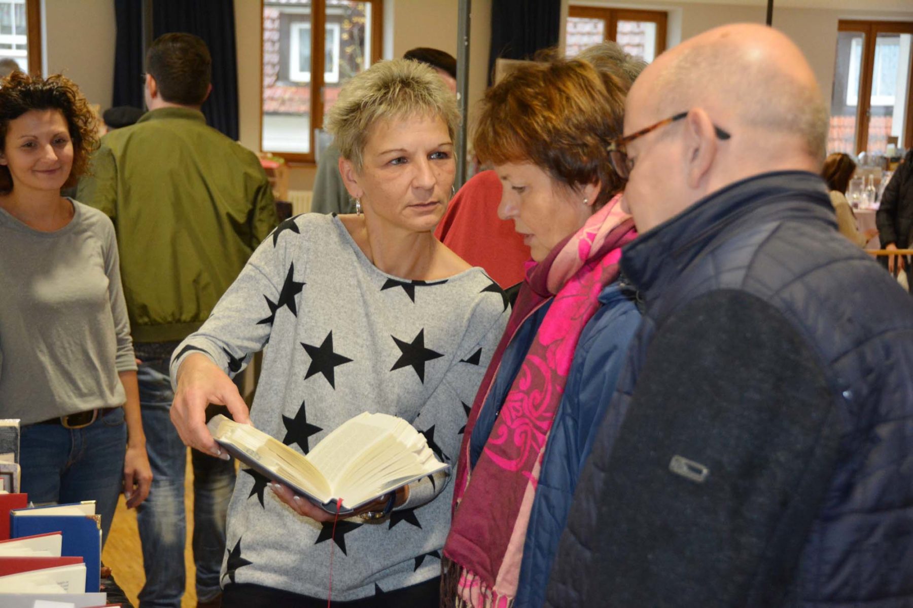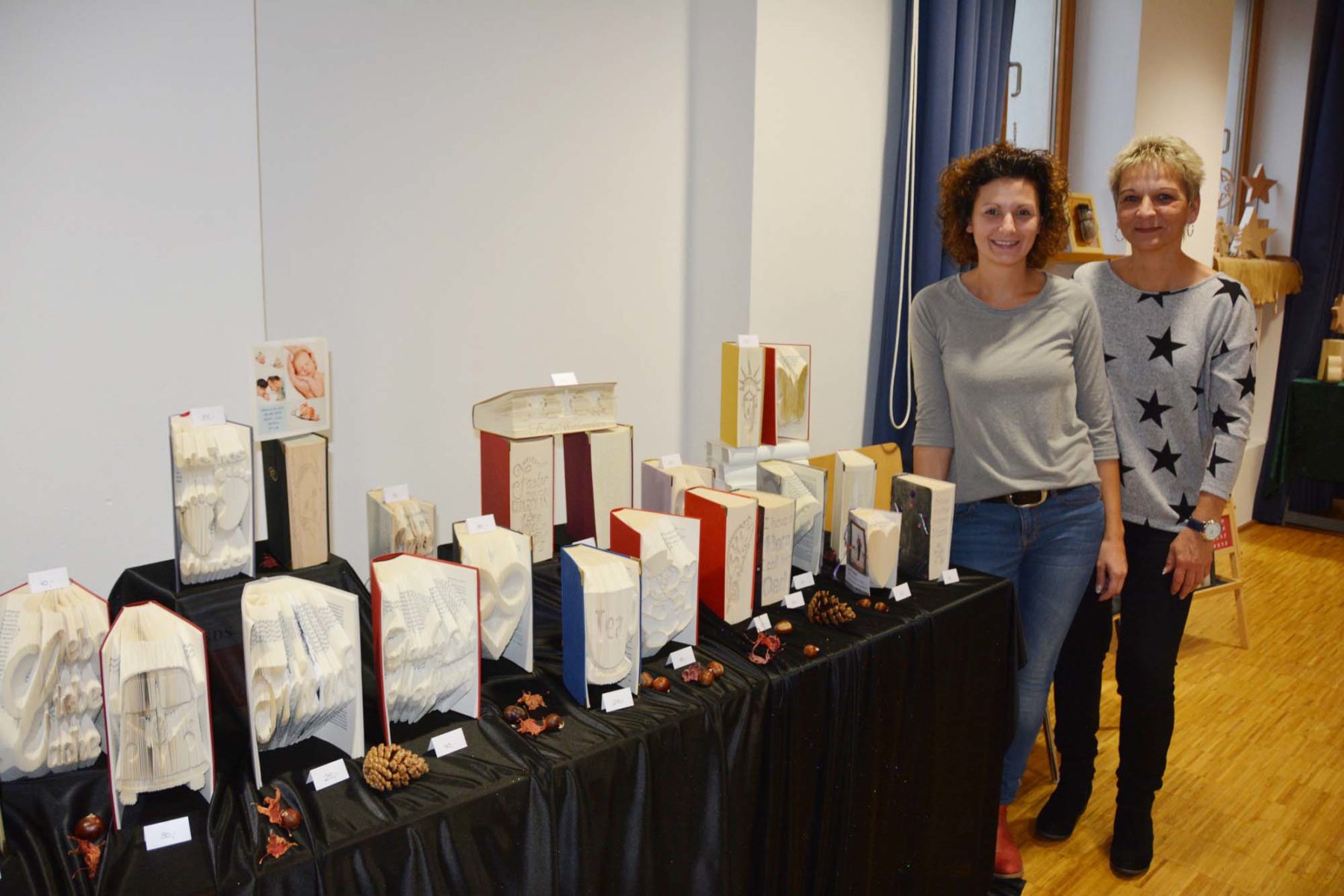 Erstmals war die Gruppe »Faltissimo« aus Zell unter den Ausstellern, die Kunstwerke aus Büchern zaubert. »Wir haben geschaut, was wir mit alten Büchern machen können«, berichtet Cornelia Vollmer. »Viel Geduld und viele Stunden Arbeit sind notwendig, um diese einzigartige Deko oder personalisierten Geschenke herzustellen«, ergänzt Eline Schuler. Mit zur Gruppe »Faltissimo« gehört Manuela Matzander, die seit eineinhalb Jahren diese ausgefallene Hobbykunst ausübt.