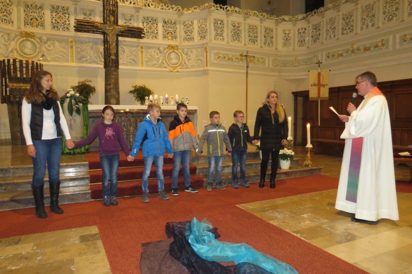 »Das Erstkommunionteam tut es ehrenamtlich, weil sie es gerne tun«, machte Gerner deutlich. Aber das gehe nur, wenn die Eltern diese Arbeit unterstützen. Weiter betonte er: »Ich möchte Sie ermutigen, ihre Kinder zu begleiten. Wir vertrauen darauf, dass Sie als Eltern mittun.« Er forderte die Eltern auf, ihre Kinder in die Schülergottesdienste zu schicken. Diese Feiern finden am Mittwochmorgen vor dem Schulbeginn statt und werden sehr persönlich gestaltet. Am Ende seiner kurzen Predigt sagte Pfarrer Gerner: »Ihre Kinder sind freiwillig hier. »Hand in Hand« ist auch das Motto für uns. Wir reichen ihnen die Hand und vertrauen auf ihre Unterstützung. Darum möchte ich Sie heute Abend sehr herzlich bitten.«