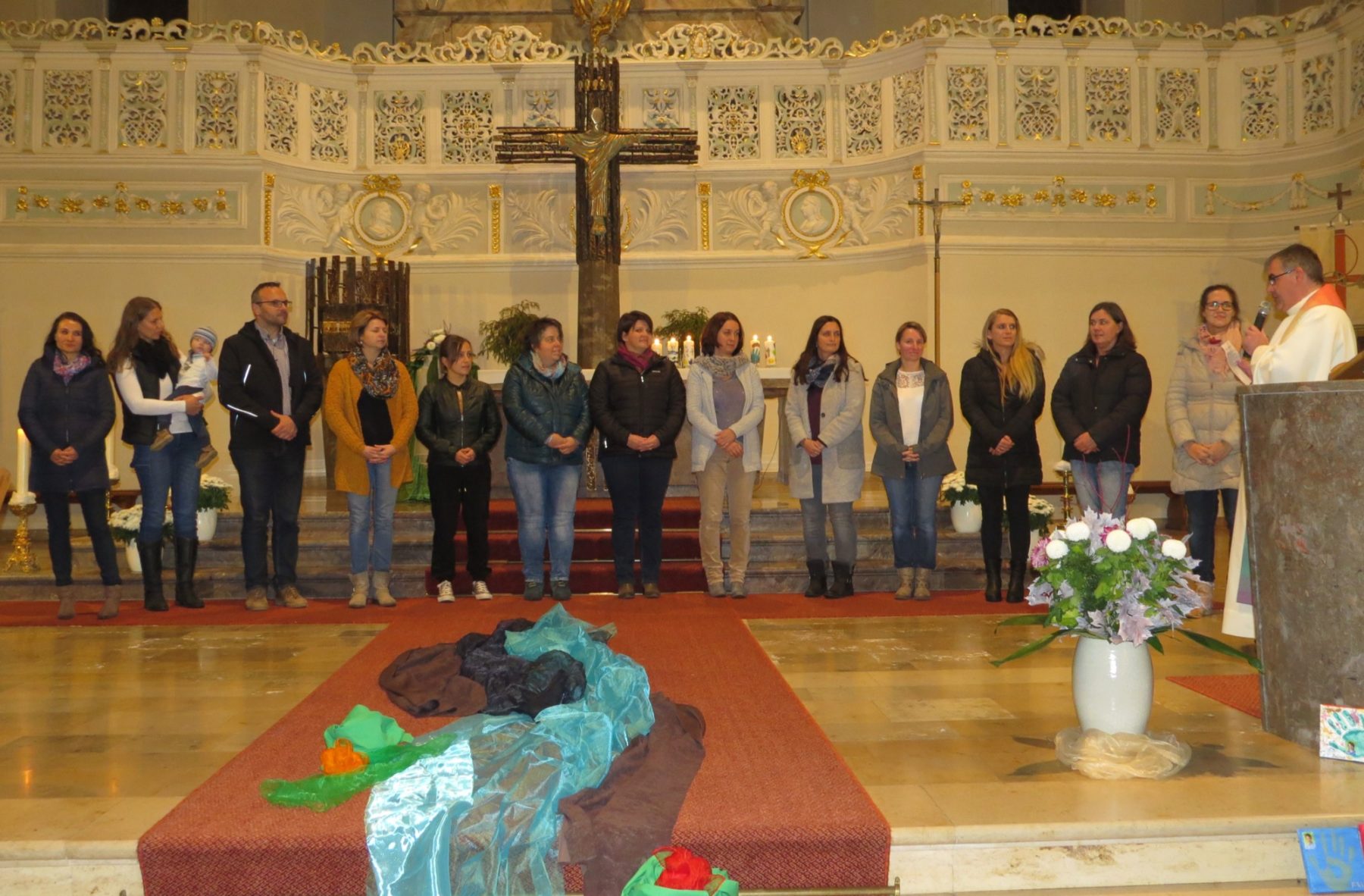 Am Samstagabend feierten die Kinder mit ihren Familien den Beginn der Erstkommunionvorbereitung. Sie wurden mit ihren Gruppenbegleiter/innen der Gemeinde vorgestellt. Mit einem Anspiel und der Musik der Gruppe »Horizont« war der Gottesdienst schön gestaltet.