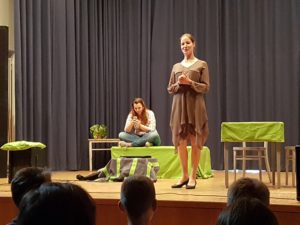 In rasant gespielten, kurzweiligen Szenen zeigten die Schauspielerinnen die Vorteile, aber auch vor allem die Gefahren des Internets. Beliebte Apps, Online-Spiele und soziale Netzwerke wurden dabei nicht ausgespart. Die zentrale Botschaft wurde den jungen Zuschauern am Ende des Stücks und im anschließenden Gespräch mit den Schauspielerinnen eindrücklich verdeutlicht: Die Zeit im wahren Leben ist durch nichts zu ersetzen und wertvoller als jede online-Erfahrung. Ein guter Grund öfters »offline« zu gehen und das eigene Handy-Verhalten kritisch zu hinterfragen.