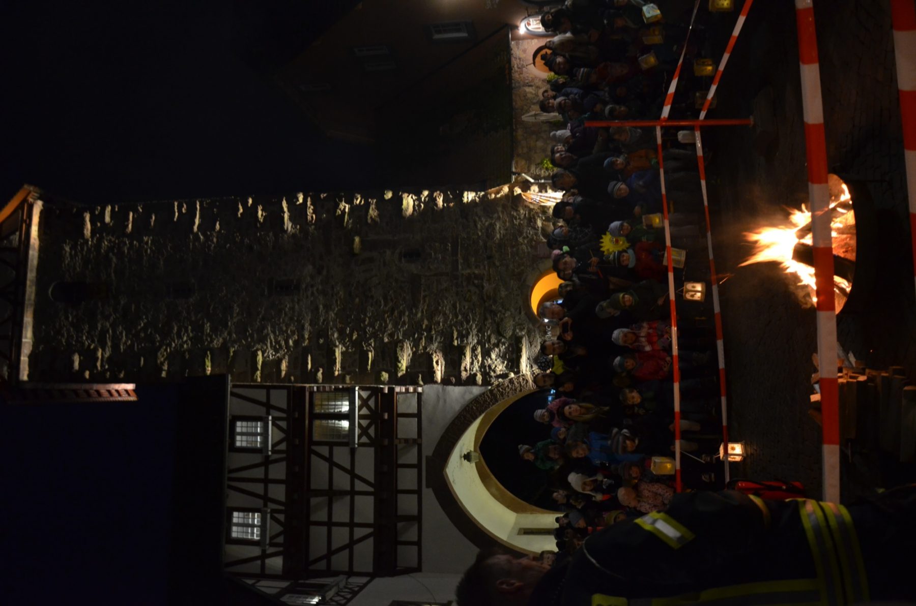 Im Licht des Martinsfeuer wurde zum St.-Martinslied von den Sternschnuppenkindern Malte und Emma noch die Legende aufgeführt. Malte teilte seinen Umgang und gab die abgetrennte Hälfte Emma.