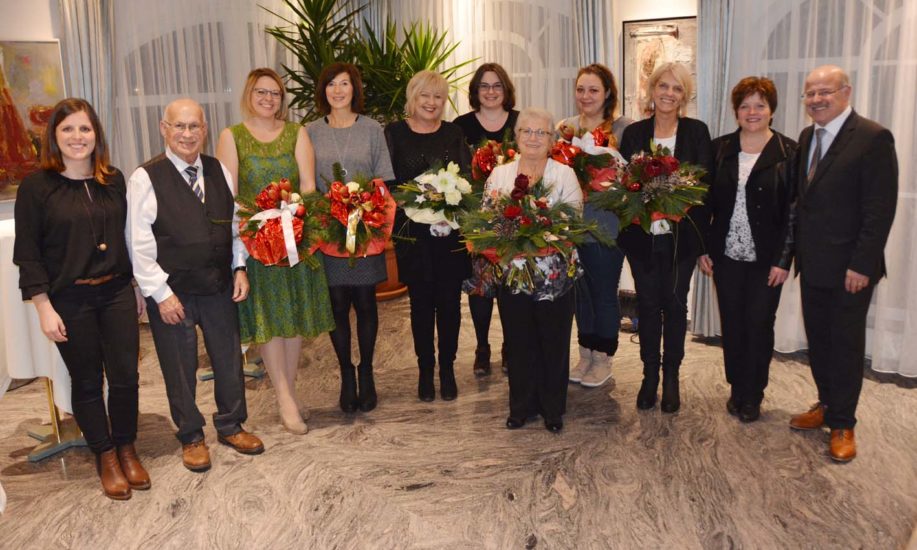 Ihr 35-jähriges Betriebsjubiläum kann Margherita Sicuro feiern. Die Putzfrau sorgt mit Engagement für das Wohlfühlklima in den Geschäftsräumen und versprüht mit ihrem Charme zudem italienische Lebensfreude. Verabschiedet werden musste Brigitte Greber, die 30 Jahre lang als qualifizierte Mitarbeiterin eine wichtige Stütze in der Druckvorstufe gewesen ist. Zum Bedauern der gesamten Belegschaft und der Geschäftsinhaber kann sie aus gesundheitlichen Gründen die Bildschirmarbeit nicht mehr ausführen.