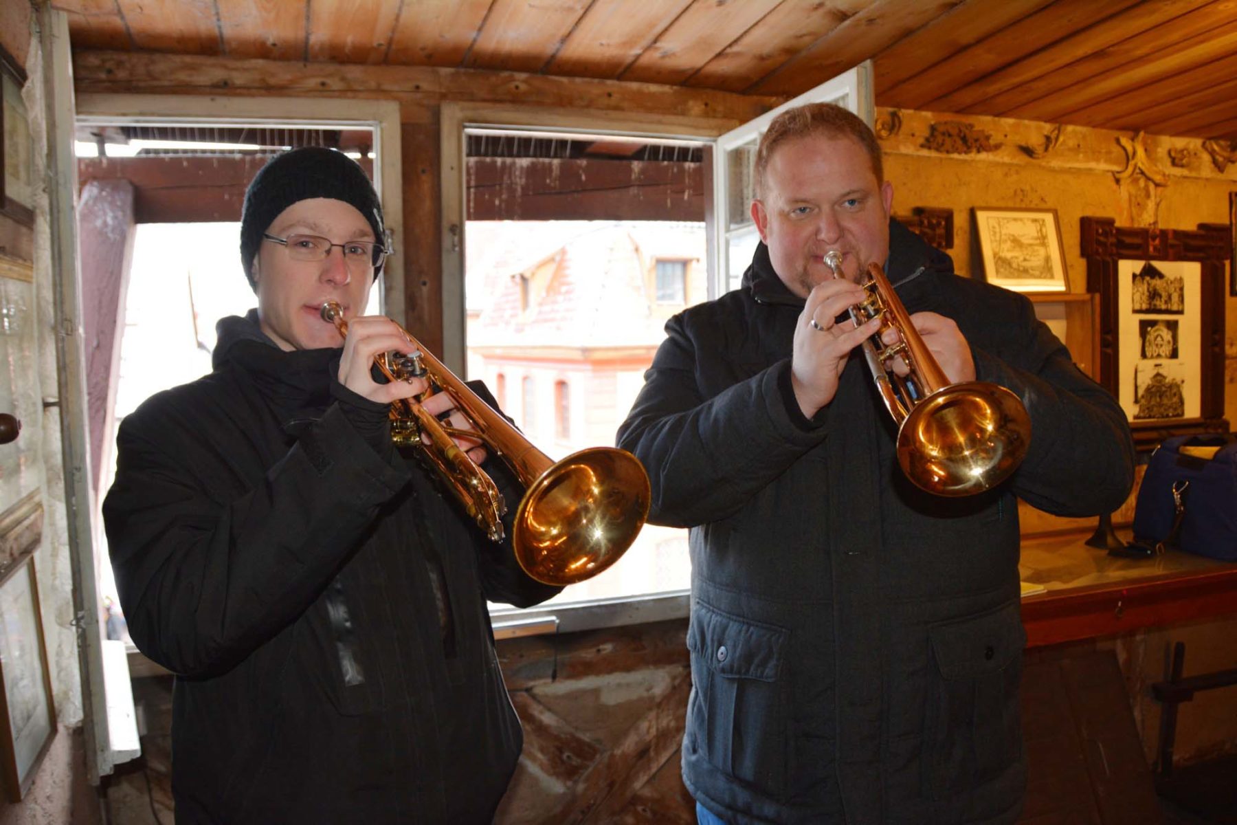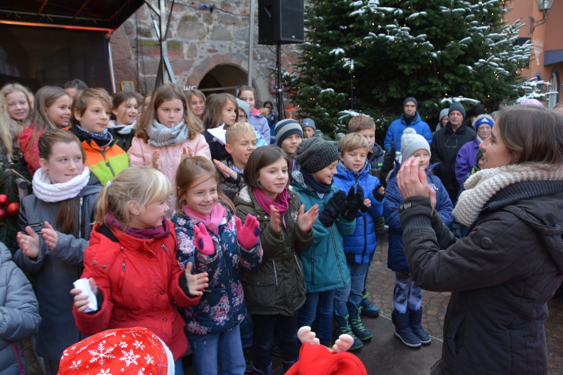 Pünktlich um 10 Uhr gaben die beiden Trompeter Stefan Polap und Jan Breig mit weihnachtlichen Klängen den offiziellen Startschuss des Nikolausmarktes. Der Mandolinen- und Gitarrenverein, die Zweitklässler des Bildungszentrums Ritter von Buß und die Jugendkapelle ZEH setzten das Programm auf der Bühne unterm Storchenturm fort.