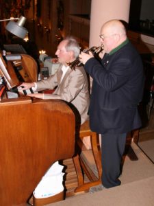 Einen besonderen instrumentalen Akzent setzte Dietmar Roth mit der B-Trompete und der Hoch-B oder Bachtrompete. Das Zusammenspiel von weichem Orgelklang und durchdringenden Trompetenstößen findet bekanntlich viele Liebhaber. Dass sich Dieter Benson an der Orgel auf dieses Miteinander gekonnt eingelassen hat, zeigte einmal mehr seine meisterliche Beherrschung des Instruments. Das getragene Stück »Panis Angelicus« eines französischen Komponisten fand seine triumphale Ergänzung im »Ted Deum« eines englischen Musikschöpfers.