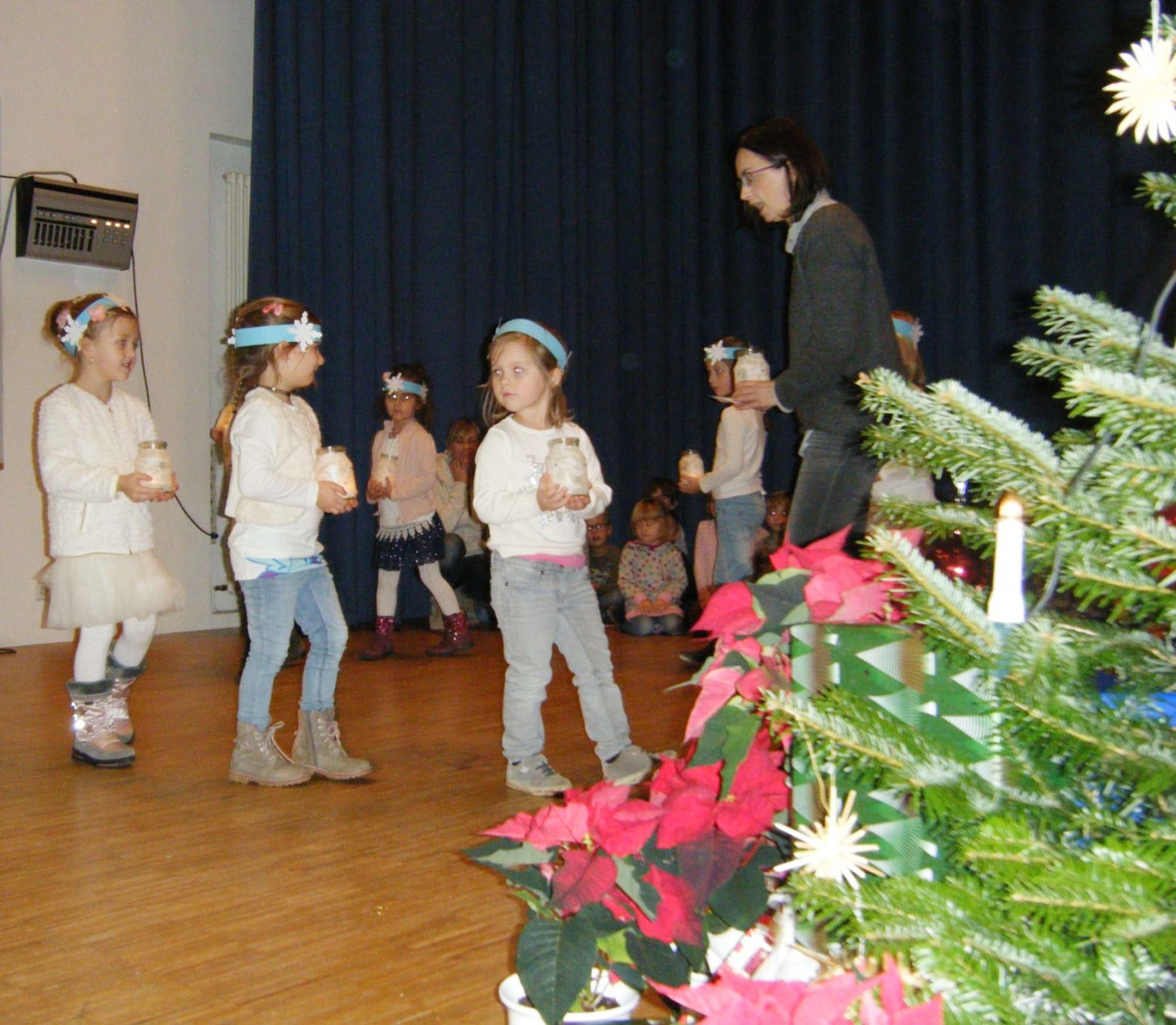 Im geschmückten Raum gab es zur Begrüßung ein Gedicht von Fahrer Hubert Walter. Die Kindergartenkinder unter der Leitung von Michelle Körnle erfreuten mit einem Sternentanz und selbst gebastelten Laternen die Anwesenden.