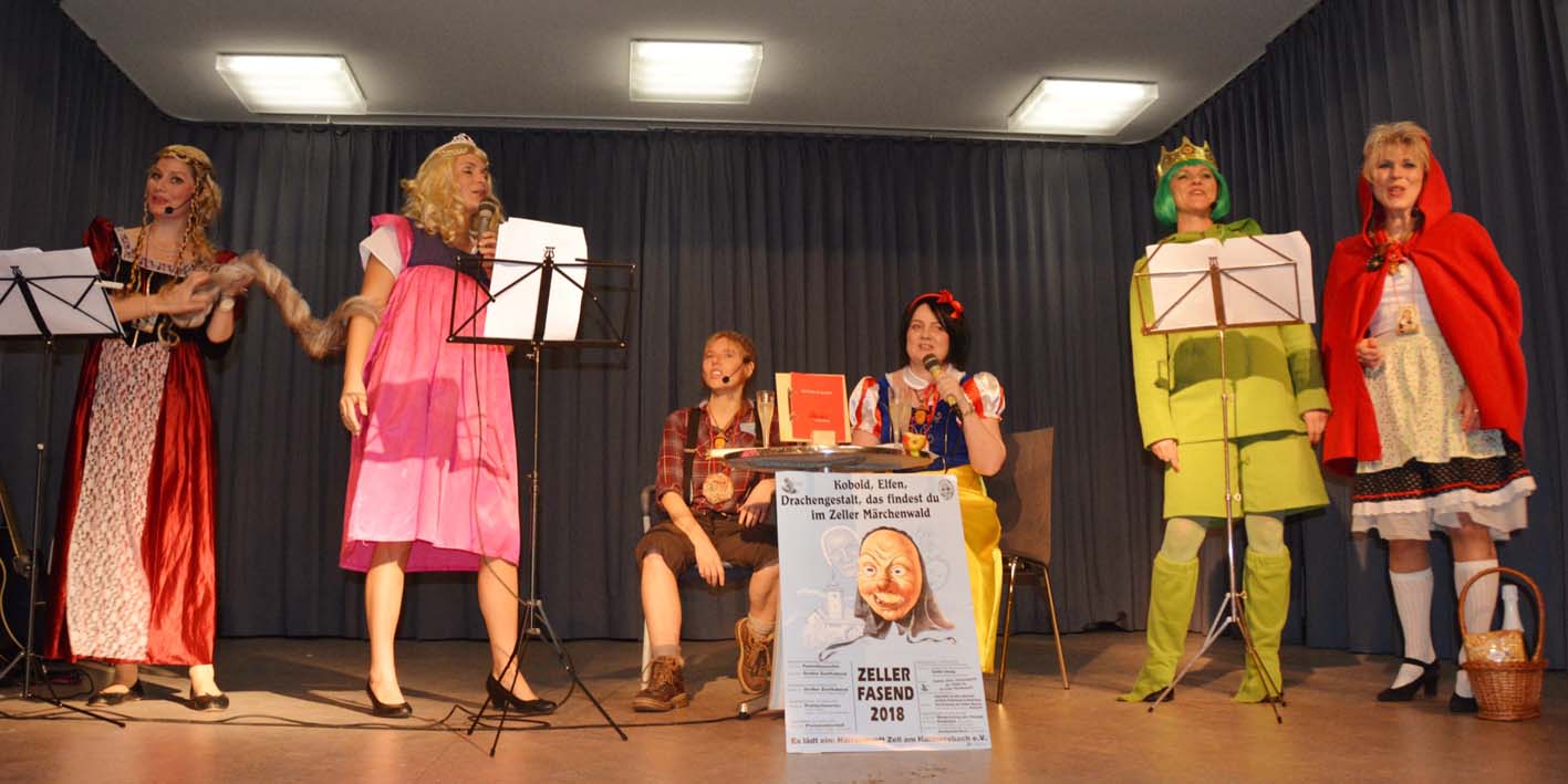 Ihr Glück in der Kirchstraße suchten die sechs Oberharmersbacher Märchengestalten Rotkäppchen, Froschkönig, Hänsel, Dornröschen, Schneewittchen und Rapunzel. »Es war einmal« trauerten sie nur kurz der kürzesten Fußgängerzone der Welt nach, um dann an Dreher’s Knusperhäuschen zu knabbern. Im Feinschnitt könne sich Rapunzel ihren Zopf abschneiden lassen und in Claudias Blumenparadies findet Dornröschen sicher ihren Rosen-Prinz. »Wir sind die Fasendhelden im Zeller Märchenwald« weckten die sechs Neuhauser Sängerinnen die Vorfreude auf die Zeller Straßenfasend.