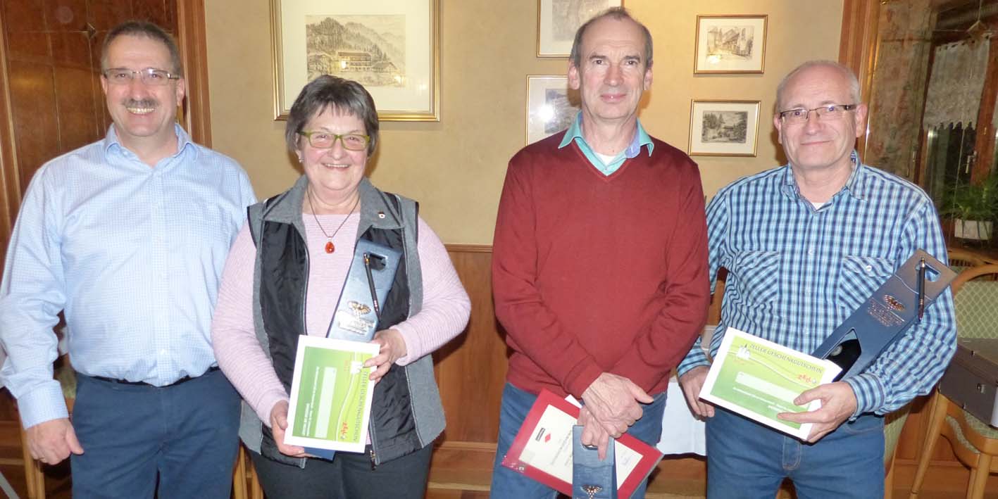 Für ihr besonderes Engagement ehrte Manfred Brosamer Rita Isenmann, Berthold Brosamer und Klaus Bergmann (von links nach rechts).