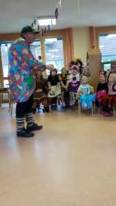 Zum dritten Mal lud Kindergartenleiterin Ingrid Mattheis am Freitag vor der Fasend den Zauberer Magic-Edgar ein, um die Kinder zu verzaubern. Der Magier folgte auch dieses Jahr der Einladung und kam als Zauberclown in die Sternschnuppe. Mit dabei hatte er seine Zauber-Assistentin Lena, die – mit dreieinhalb Jahren – vom Opa schon ein paar Tricks erlernt hat und diese dann auch den Freundinnen und Freunden ihrer Kindergartengruppe vorführte.