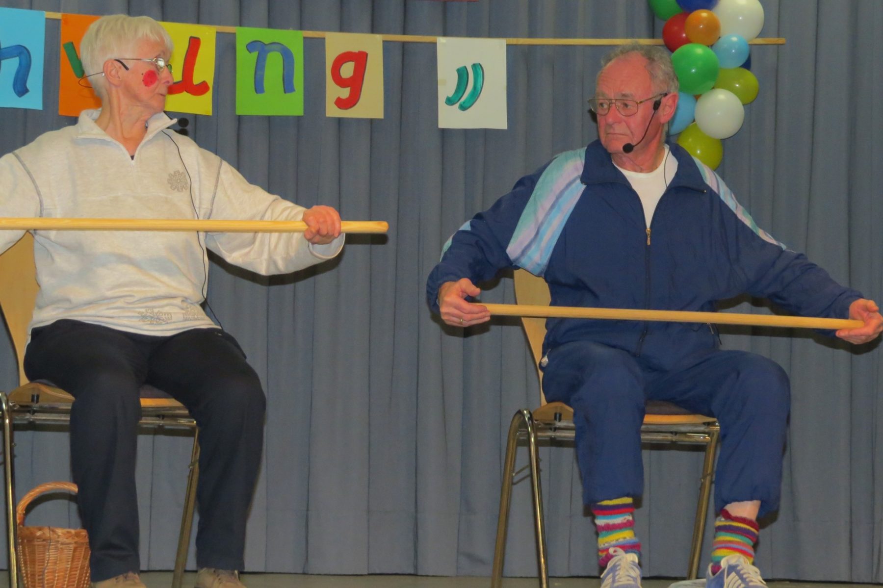 Die Musiker Gisela und Karl-Heinz Hug wussten, welche Fasendslieder die Senioren noch kennen und spielten gern die alten und immer wieder aktuellen Lieder. Gern machten die Gäste mit: Klatschen, Mitsingen und Schunkeln und ja – die Hände in den Himmel machen auch