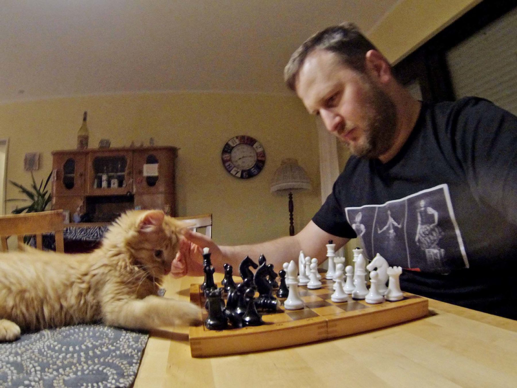 Die Lahrer traten in bärenstarker Aufstellung an. Bei Zell fehlten Spitzenspieler Kurt Jäger und Stefan Gießler. Die beiden Vertreter machten ihre Sache jedoch ausgezeichnet, so dass ein Zeller Sieg lange Zeit möglich schien. Eugen Schmidt gelang am Brett 7 ein Blitzsieg. Er nutzte einen Eröffnungsfehler seines Gegners zum Figurengewinn und gab dem gegnerischen König wenig später mit einer Springer-Gabel den Todesstoß. Eduard Bernhardt (8) wurde von seinem Gegner mit der exotischen Orang-Utan Eröffnung überrascht, was ihn etwas aus dem Konzept brachte. Er antwortete seinerseits untypisch, verzichtete auf die Rochade um seinem Turm Angriffsmöglichkeiten zu bieten. Er brach alle Brücken hinter sich ab, büßte einige Figuren ein, aber letztlich gelang es ihm seinen Widerpart mattzusetzen. Dieter Marzluf (5) hatte eine ziemlich ausgeglichene aber passive Stellung, in der aktives Spiel nur schwer möglich war. Letztlich kostete ihn das die Partie durch Zeitüberschreitung. Ähnlich erging es Vorstand Wilhelm Eble (2) in zu passiver Stellung. Thomas Gißler (6) hatte nach wilder Eröffnung und taktischem Kampf einen starken Freibauern als Kompensation für den verloren gegangenen Läufer, und die Partie endete unentschieden. An Brett 3 teilte Adolf Woisetschläger seine Zeit gut ein und verfügte in der kritischen Partiephase deshalb über genug Ressourcen die besseren Züge zu finden. Damenabtausch mit Figurengewinn brachten Woisetschläger den Erfolg. Nun sah es gut aus. Beim Stande von 2,5:3,5 hatte Jürgen Gißler an Brett 1 mit seinem starken Freibauernduo die Partie eigentlich schon im Sack. Ein taktisches Intermezzo zerstörte seine gute Stellung und mündete in ein für ihn verlorenes Turmendspiel. Schade. Nun musste Mannschaftsführer Michael Vollmer (4) noch ein Remis liefern, um der Mannschaft einen Punkt zu sichern. Doch weder Stellung noch Zeitguthaben ließen Gutes erhoffen. Doch irgendwie gelang es ihm mit Glück und Geschick: Ein Mannschaftsremis, wahrscheinlich zu wenig für den Klassenerhalt.