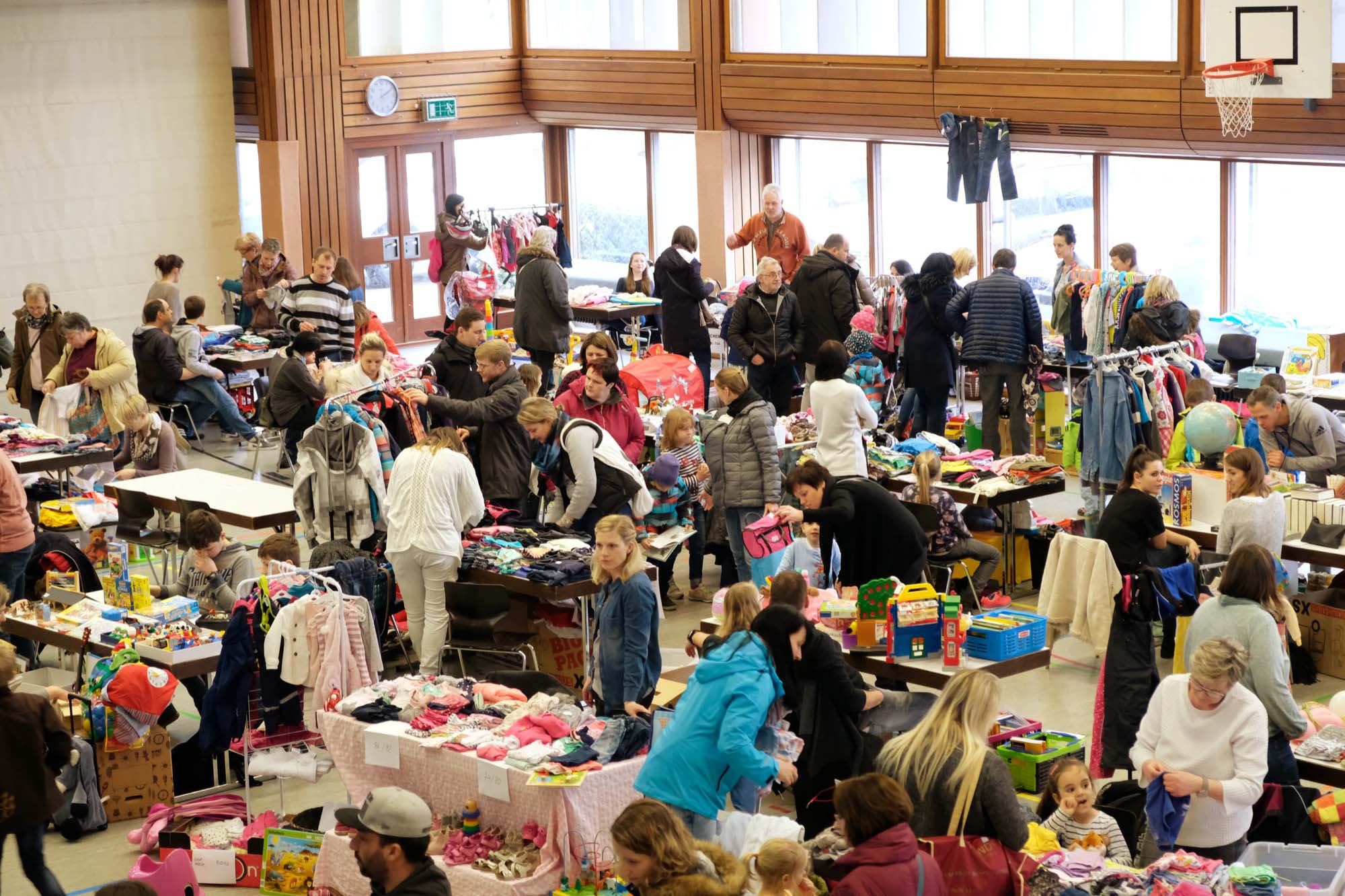 Die 38 für den Flohmarkt zur Verfügung stehenden Tische waren besetzt und es herrschte gleich ab 16 Uhr reger »Geschäftsbetrieb«. Bei mildem, regnerischem Wetter war der Kinderbasar in der Ritter-von-Buß-Halle am vergangenen Samstag ein beliebtes Ausflugsziel. Nicht nur Mamis mit ihren Kindern. Auch zahlreiche Omas und Opas und nicht zuletzt werdende Mütter begaben sich auf Schnäppchenjagd. Nach dem Shoppen lud eine gut bestückte Kuchentheke zu einer Verschnaufpause ein. Der Erlös des Kuchenverkaufs und die Standgebühr kommen dem Kindergarten zugute, der die Gelder für spezielle Anschaffungen nutzt.