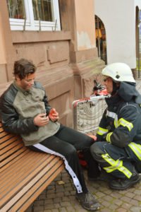 Bei der Übung am Samstag wurde angenommen, dass im Treppenhaus des Wohnhauses Pils ein Brand ausgebrochen sei. Rauch und Feuer versperrten den Fluchtweg, so dass insgesamt vier Bewohner gerettet werden mussten. Dies gelang sowohl über zwei Steckleitern als auch mittels der großen Drehleiter. Mit den Leitern können man bis zum 2. Stock gelangen, was für Ungeübte aber schon eine schwierige Angelegenheit sei.
