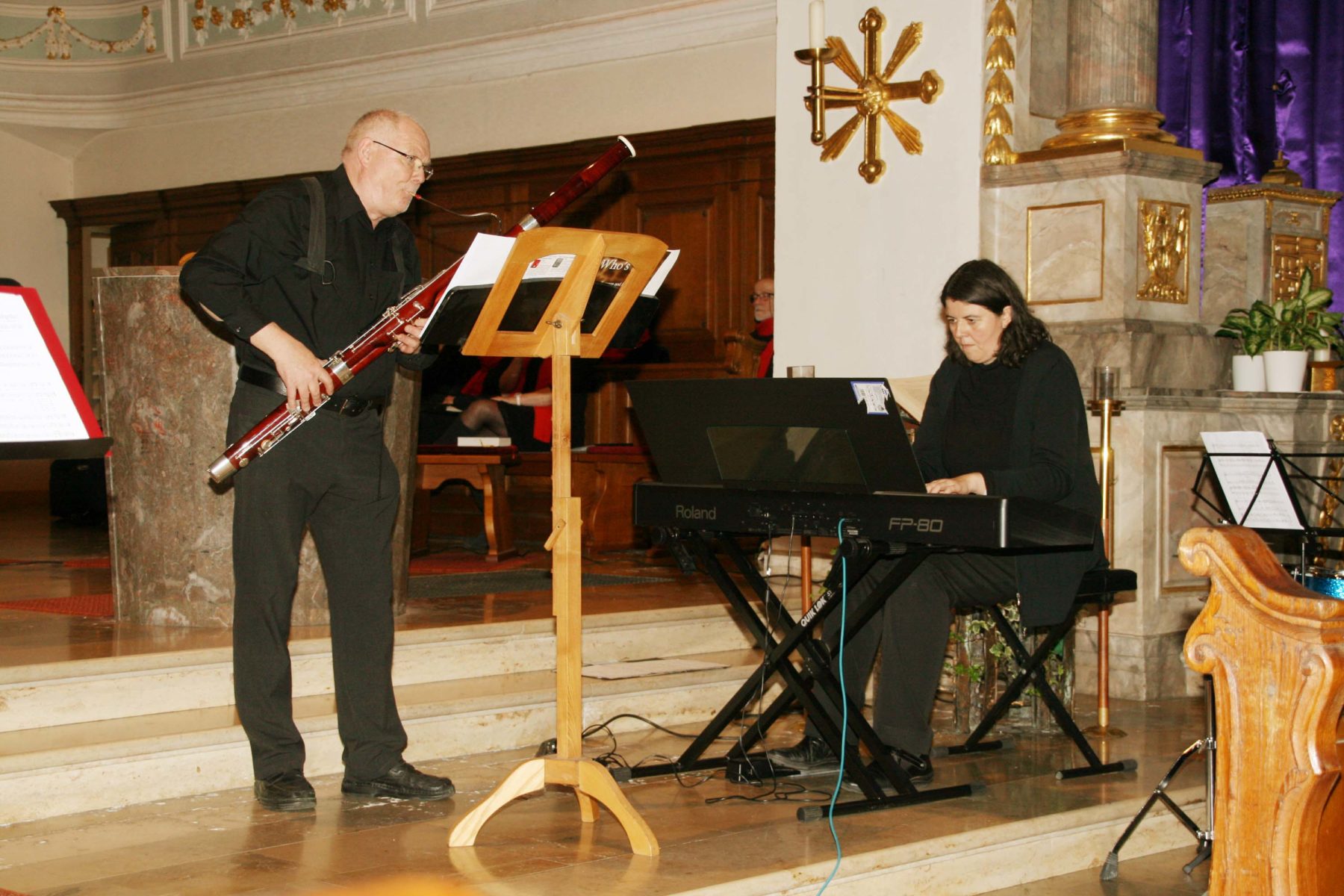 Nicht zum ersten Mal sorgte Dirigent Wolfram Dreher bei einem Chorkonzert mit dem Fagott für eine instrumentale Einlage. Begleitet wurde er dabei einfühlsam von Valérie Friedmann am E-Piano. Beim Titel »Reverie & Rag« von Laura Shur entspann sich ein reizvoller Dialog zwischen dem dunkel tönenden Fagott und den hellen Tönen des Pianos. Gab sich die Träumerei noch gemessen, lockte beim Rag die Stimmung zum heiteren Tanz.